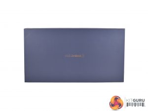 The ASUS ZenBook 3 comes neatly packaged in a navy box, with just some gold lettering on the front.