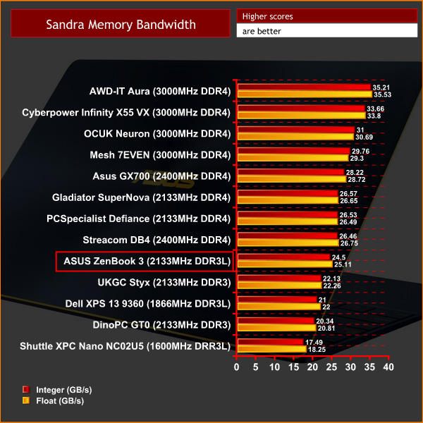 The ZenBook's memory does relatively well here – it is faster than the XPS 13's memory as it uses 2133MHz RAM, though it is still the older DDR3-standard, not DDR4.