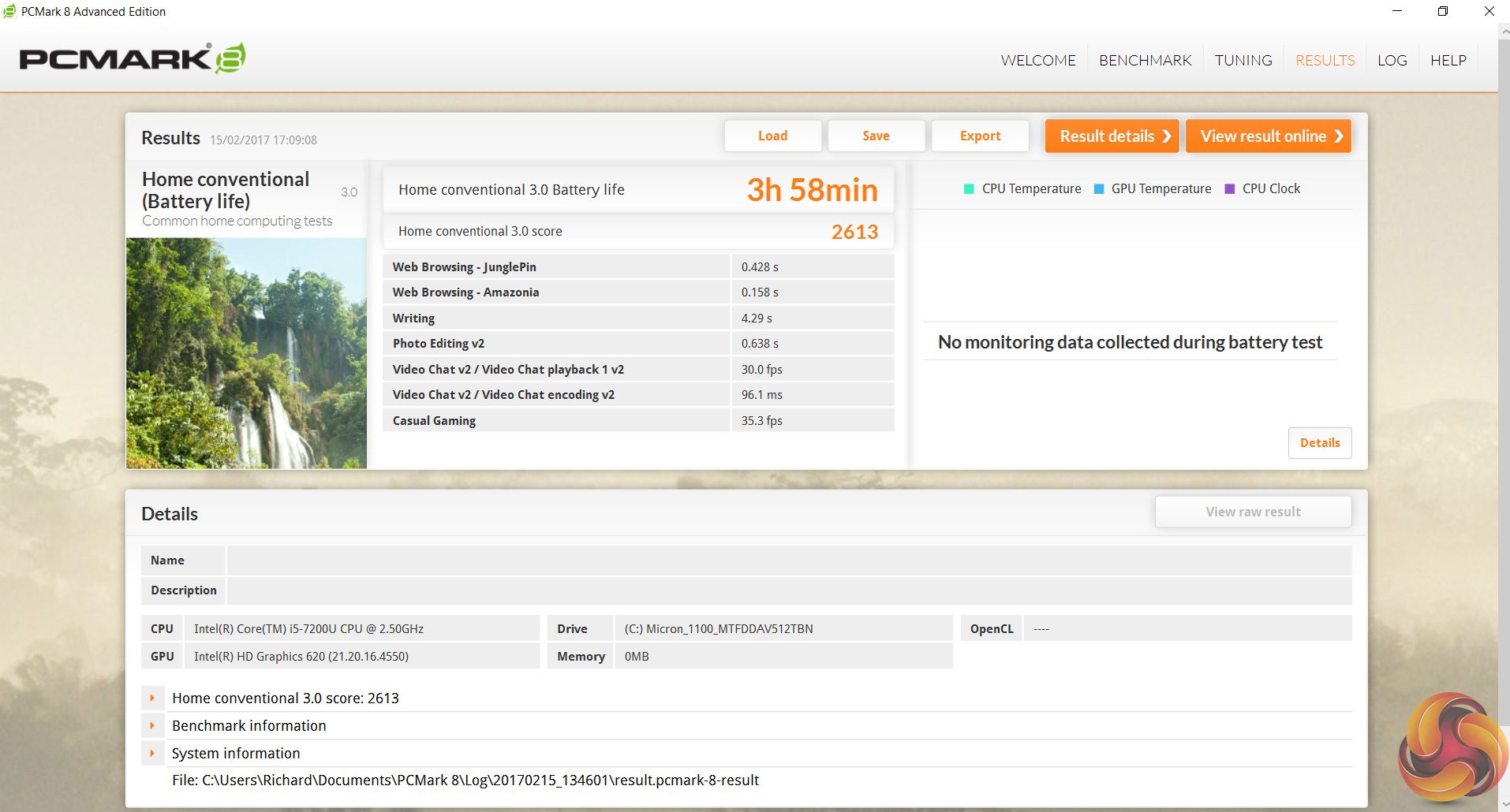 To test the battery life of a laptop, we use PCMark 8’s in-built battery benchmark – which loops its ‘Home’ benchmark until the battery fails. We do this with the screen brightness set at 50%.