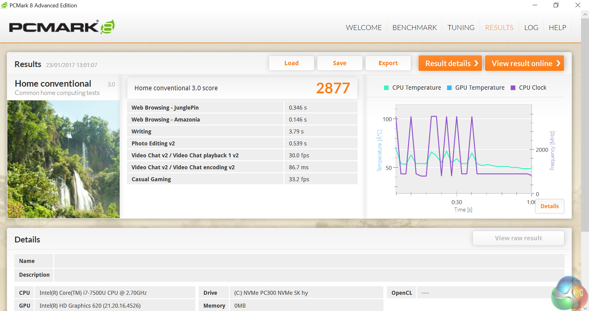 To give a general, overall score of the XPS 13’s performance, I ran PCMark 8’s ‘Home Conventional’ test.