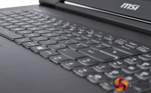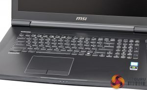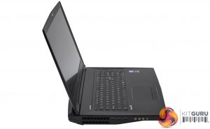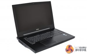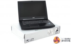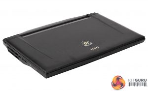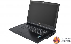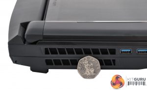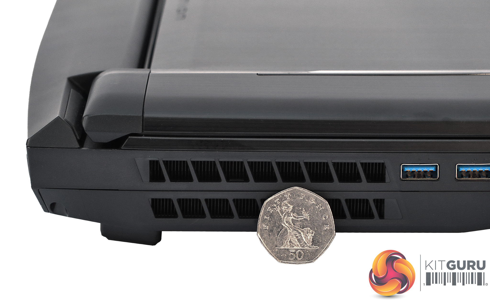 The WS73VR 7RM is absolutely massive. We normally use a pound coin to illustrate the width of a notebook, but this system measures 49mm at its thickest point, so even a 50p piece looks dwarfed in comparison. Design wise, this is a serious slab of matt black plastic and brushed metal. It exudes the serious amounts of workstation power within.