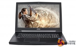 Our WT73VR 7RM includes three drives – two 128GB Toshiba THNSN5128GPU7 M.2 NVMe SSDs and a single 1TB HGST Travelstar 7K1000 7,200rpm conventional SATA hard disk. The two SSDs have been combined together into a RAID 0 array for improved performance, so they appear as a single 256GB drive. The 1TB hard disk will be plenty for carrying your content creation assets with you on the move, and its 7,200rpm rotational speed should provide decent throughput for a 2.5in notebook drive.