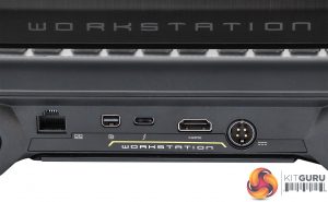 On the rear, next to the sizeable power connection, are full-sized HDMI 1.4, mini DisplayPort 1.2, a Thunderbolt 3 / USB Type-C port offering speeds up to 40Mbits/sec, and Gigabit Ethernet.