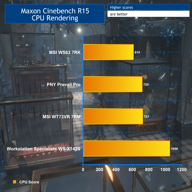 The PNY Prevail Pro achieved almost the same score as the MSI WT73VR 7RM, which sports an Intel Xeon E3-1505M v6, a more expensive CPU with slightly higher base clock frequency.
