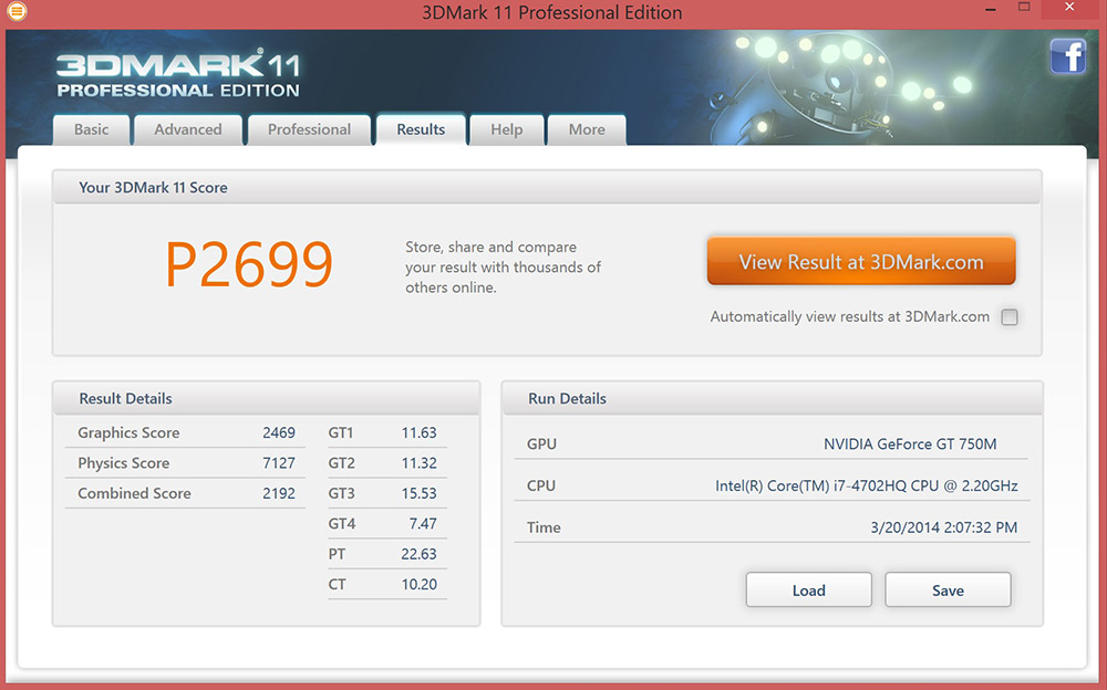 After running the tests 3DMark gives your system a score with larger numbers indicating better performance. Trusted by gamers worldwide to give accurate and unbiased results, 3DMark 11 is the best way to test DirectX 11 under game-like loads.