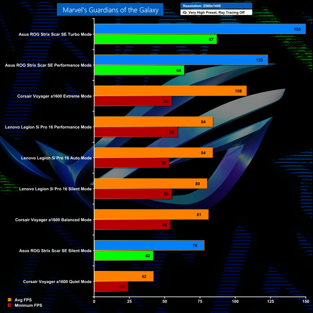 Marvel's Guardians of the Galaxy flies along at 1440p on the Asus and gives a great experience, no matter which settings you choose.