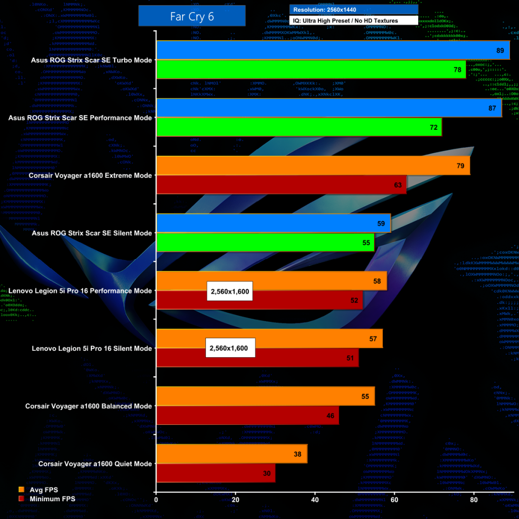 With Far Cry 6 set to 1440p we see the Asus delivering frame rates that approach those of a high end gaming desktop PC, which is pretty amazing.