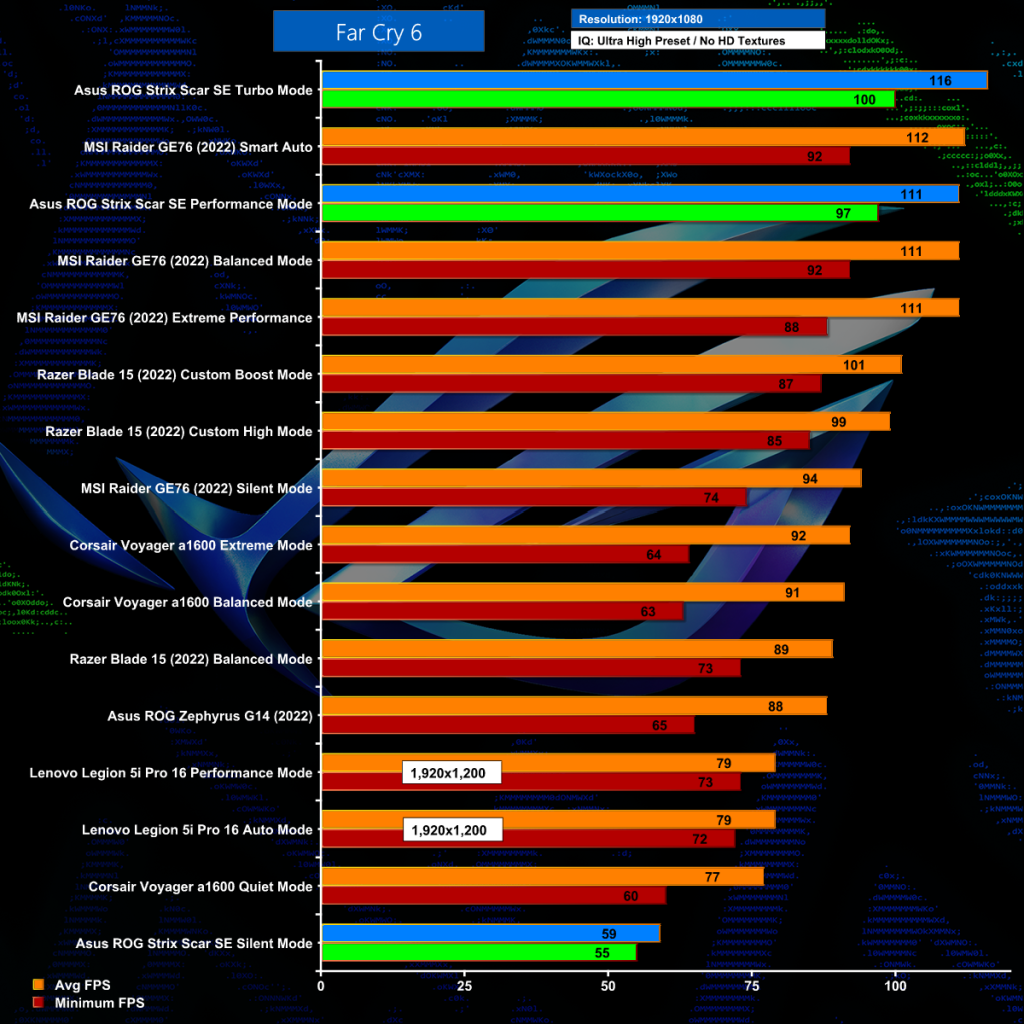 Far Cry 6 at 1080p will play well on many high end gaming laptops however on this Asus ROG Strix Scar 17 SE the frames hurtle past at high speed.