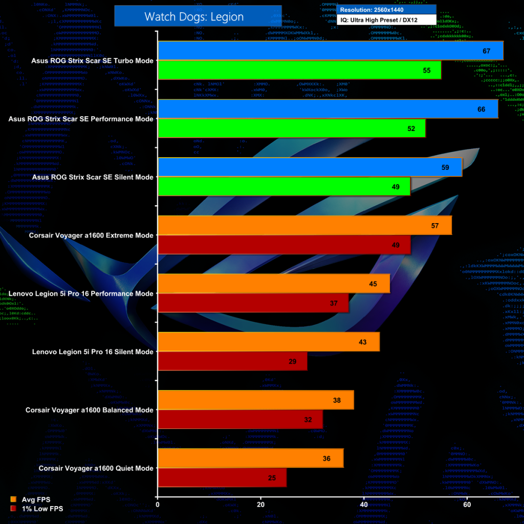 Watch Dogs: Legion at 1080p is a win for the MSI Raider GE76 that we reviewed earlier in 2022 and yes, it would be intriguing to retest that particular laptop. Anyway, the Asus once again does very handily and delivers a superb gaming experience.