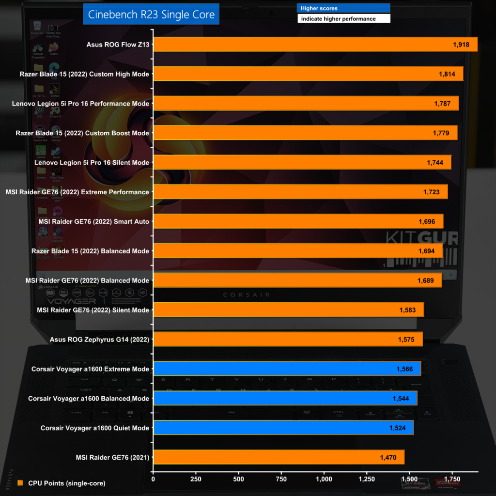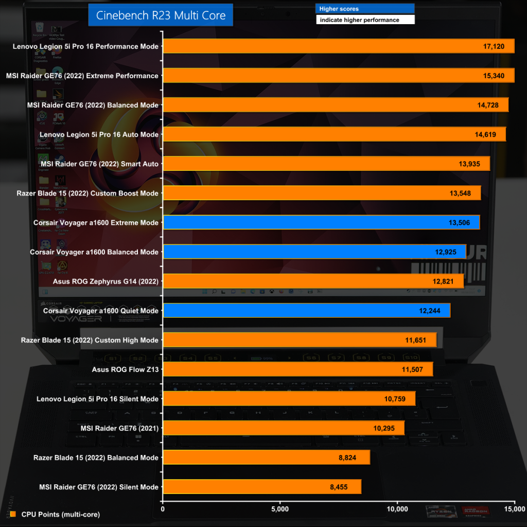 Cinebench R23 Multi Core is a similar story to Blender with the CPU performing well in the Corsair a1600.