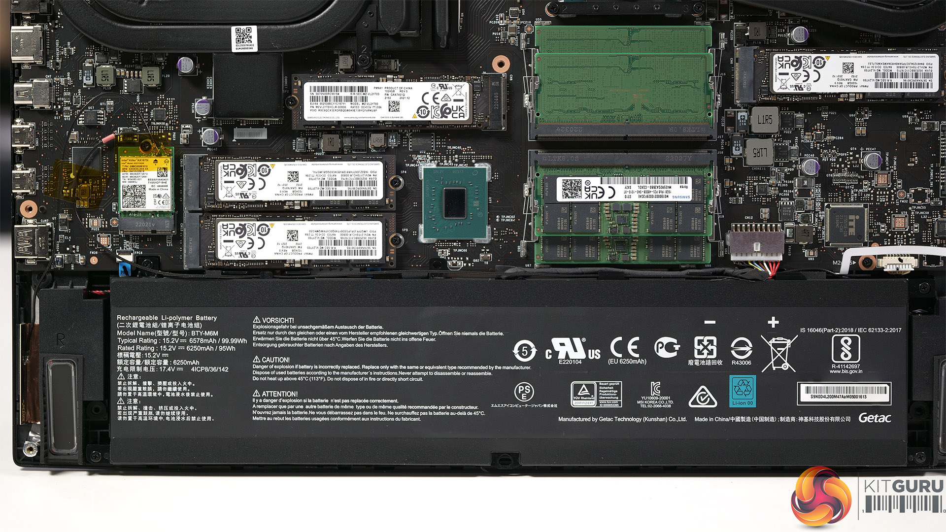 The photos above show some of the extras we received in our engineering sample. Sadly we doubt these parts will be included in a retail version of the Titan GT77. For one thing we have 64GB of DDR5 RAM in four modules and for another we have four separate 1TB Samsung M.2 SSDs that are not connected together in RAID. The final oddity is the 1,920 x 1,080 display panel with a 360Hz refresh rate. That spec may appeal to Esports aficionados however we would have much preferred the regular 3,840 x 2,160 IPS level display that actually ships with Titan GT77.