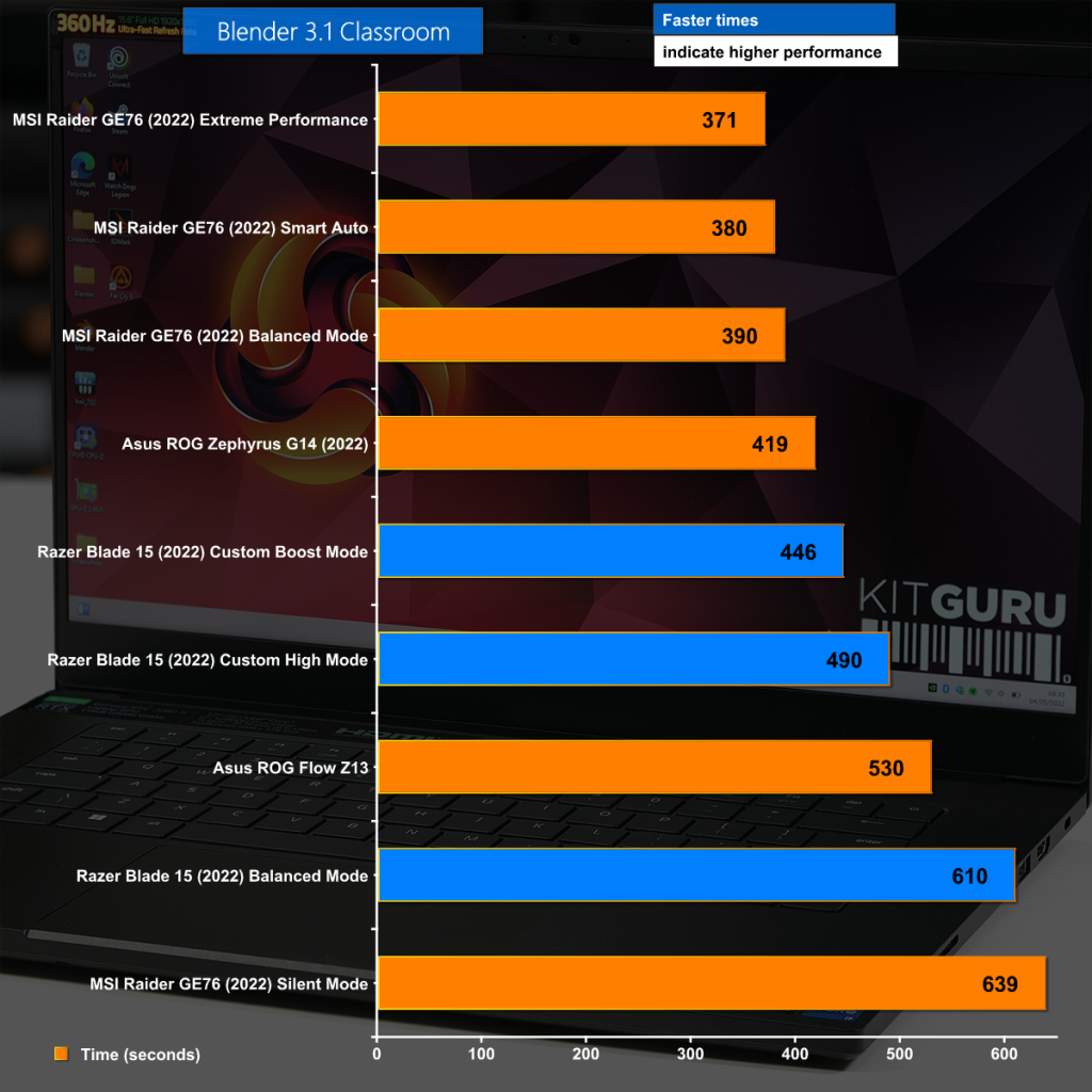 Blender 3.1 goes the same way as Cinebench R23 and the limitations on power are clear for us to see.