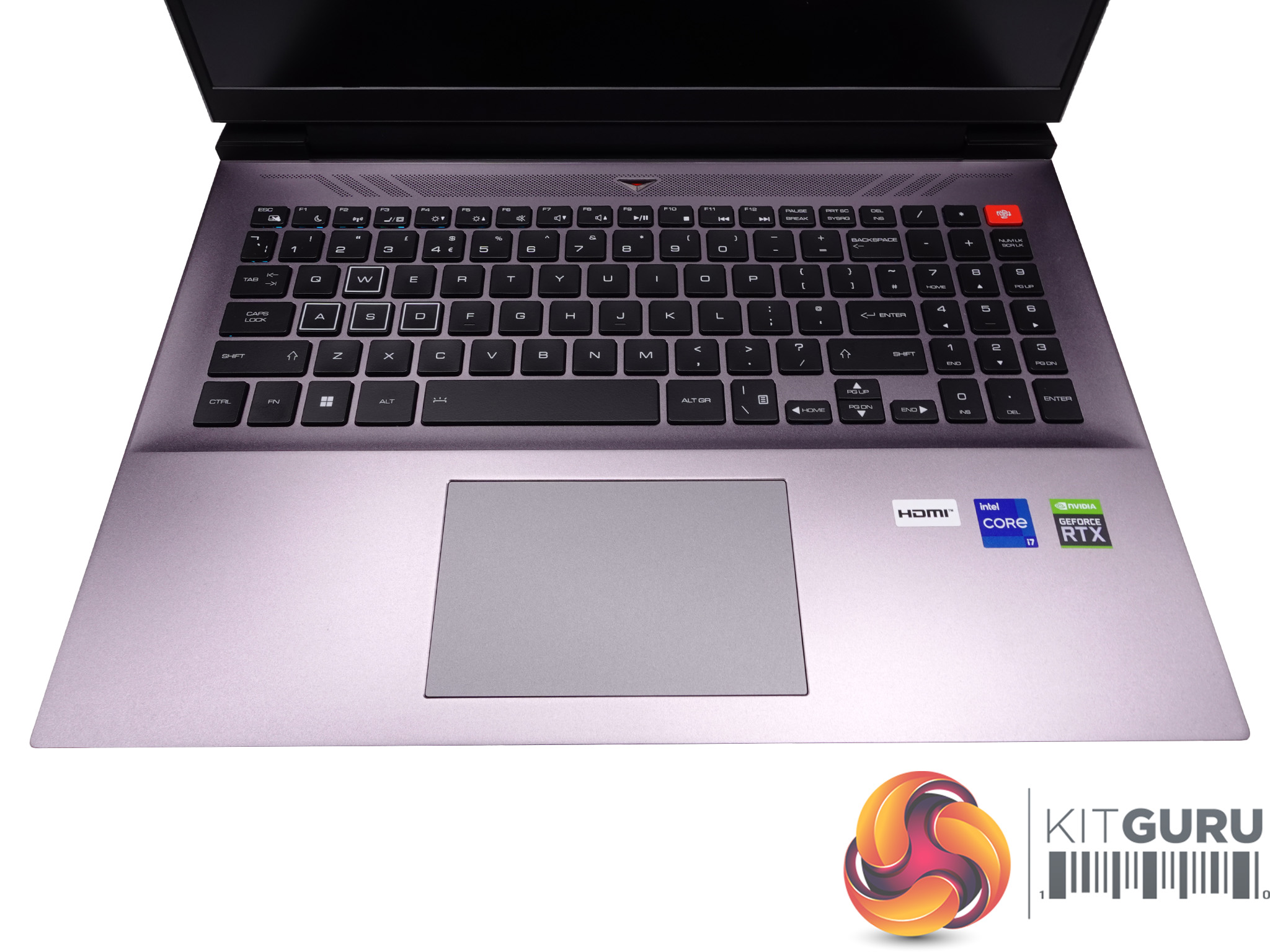 The chassis used in the Defiant line is unique in the UK to this range from Chillblast and it definitely stands out from the crowd. The laptop tips the scales at 2.5kg and is 3.1cm thick – the cooling protruding out from the back gives it an aggressive overall look which will appeal to the gamers out there, along with the well sized trackpad and gamer-themed keyboard.