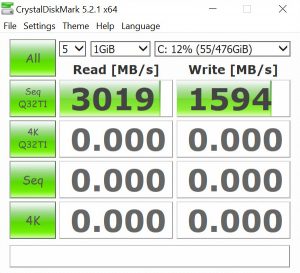 Here we test the Asus Zenbook 3 Deluxe’s storage performance, using CrystalDiskMark 5.2.1.