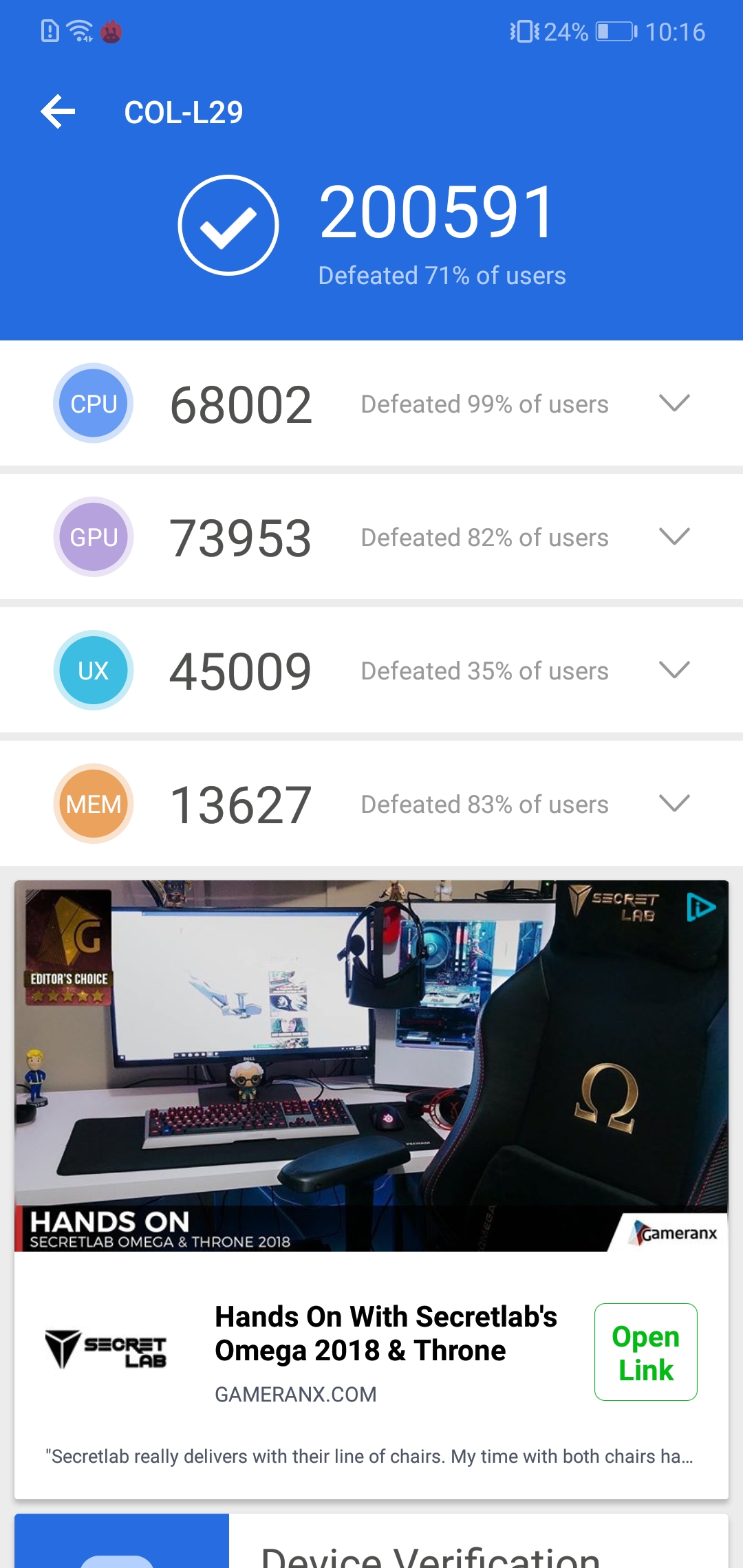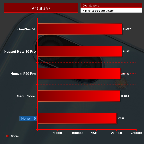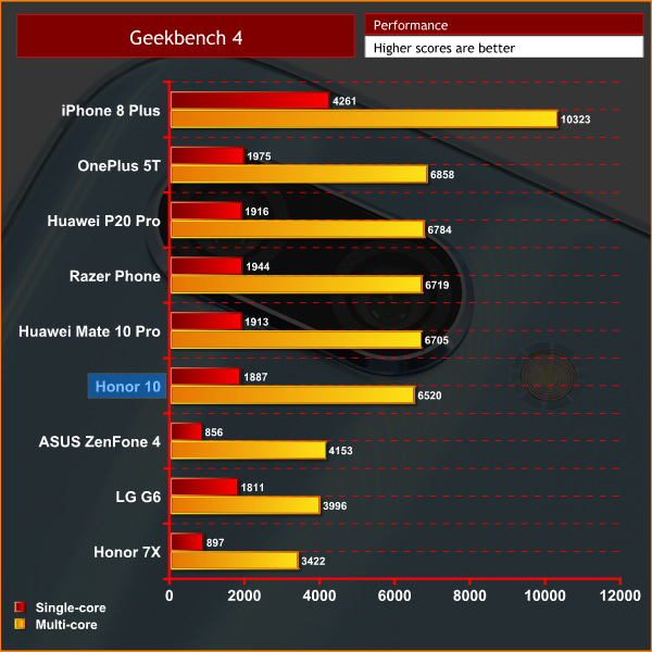 As expected, the synthetic benchmarks suggest performance of the Honor 10 is very similar to that of the Mate 10 Pro and the P20 Pro – after all, the processor is the same. The Honor does score marginally less in Geekbench 4, which is likely due to the fact that it has 4GB RAM compared to the 6GB found with the other two Huawei flagships, but the difference is not big.