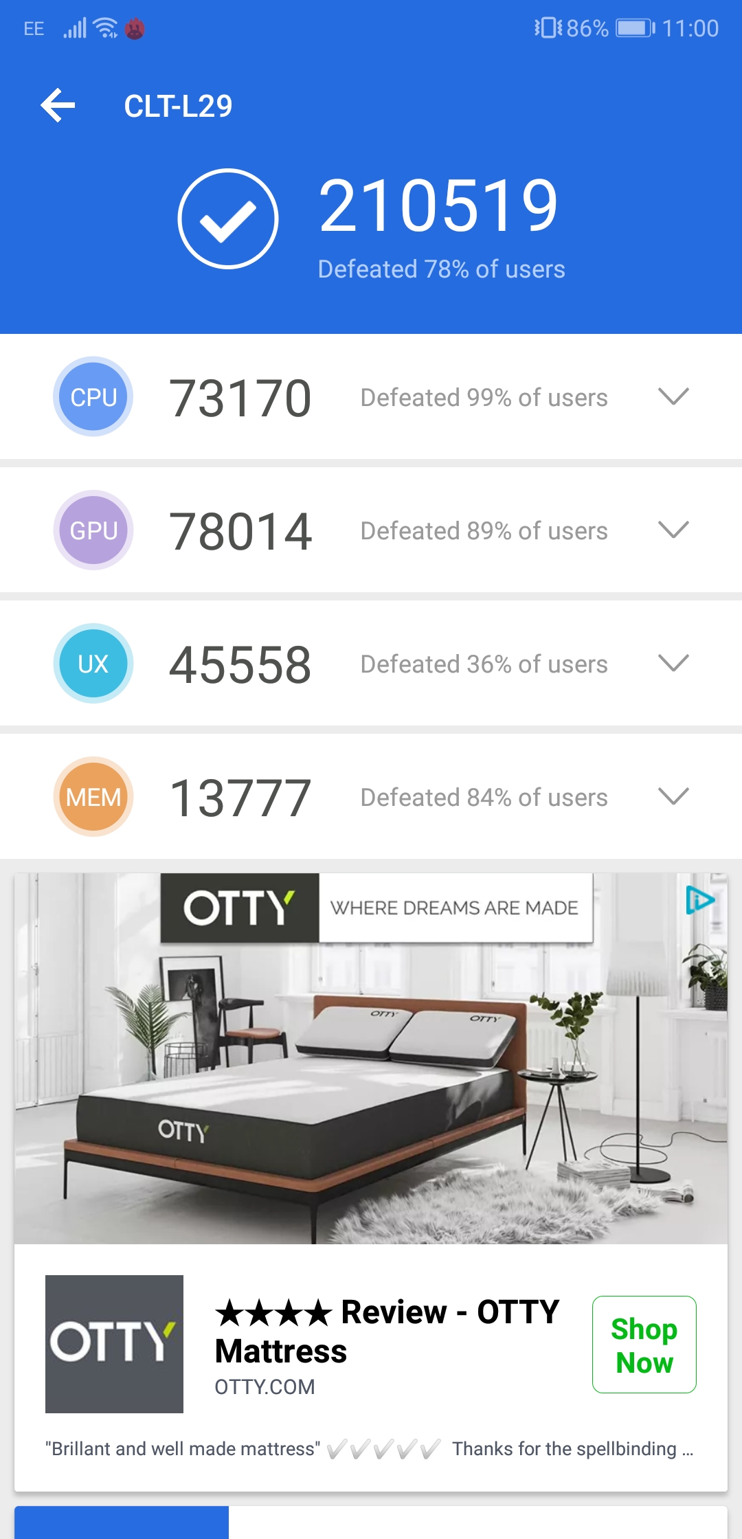 Not surprisingly, the P20 Pro scores very similarly to the Mate 10 Pro in Geekbench 4 and Antutu – they do share all the same core specs, after all. This puts the P20 Pro roughly on-par with other Snapdragon 835-based phones, and in the real world you are very unlikely to experience any slow down. I didn't, and the generous 6GB of RAM also means switching between dozens of open apps remains speedy.