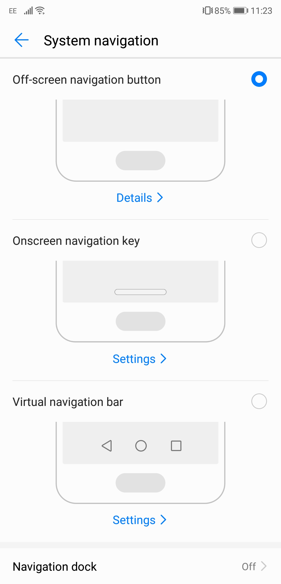 One of the more interesting aspects of EMUI is its ability to use the fingerprint reader as the home buttons. This is enabled under the ‘system navigation' setting and is actually quite simple – a single tap on the scanner takes you back, a tap and hold takes you to the home page and swiping left or right brings up the open apps.