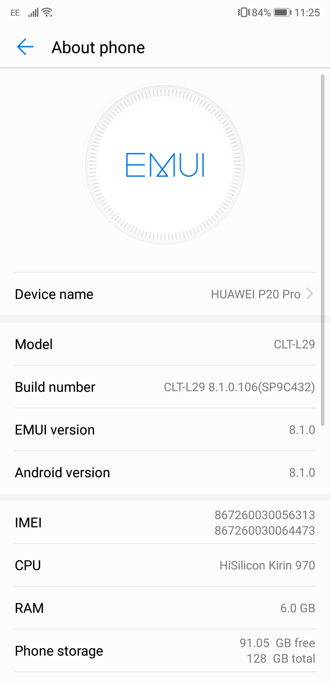 Built on Android Oreo 8.1, the P20 Pro runs EMUI 8.1, which is Huawei's custom Android skin.