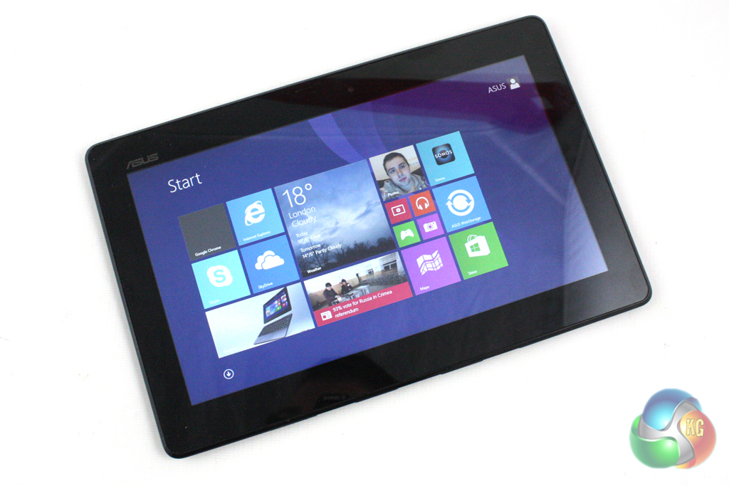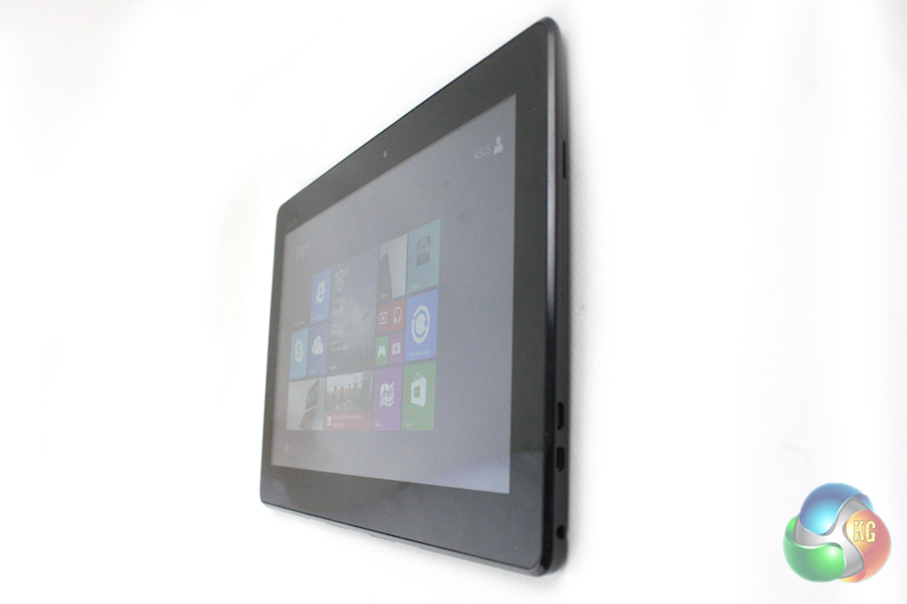 Unlike most Windows tablets, the Transformer Book doesn’t feature a Start button on the front. Asus have relegated it to the left hand side of the tablet alongside the volume controller. The power button is located nearby on the left side of the top edge of the tablet.