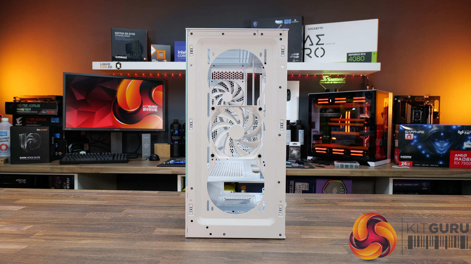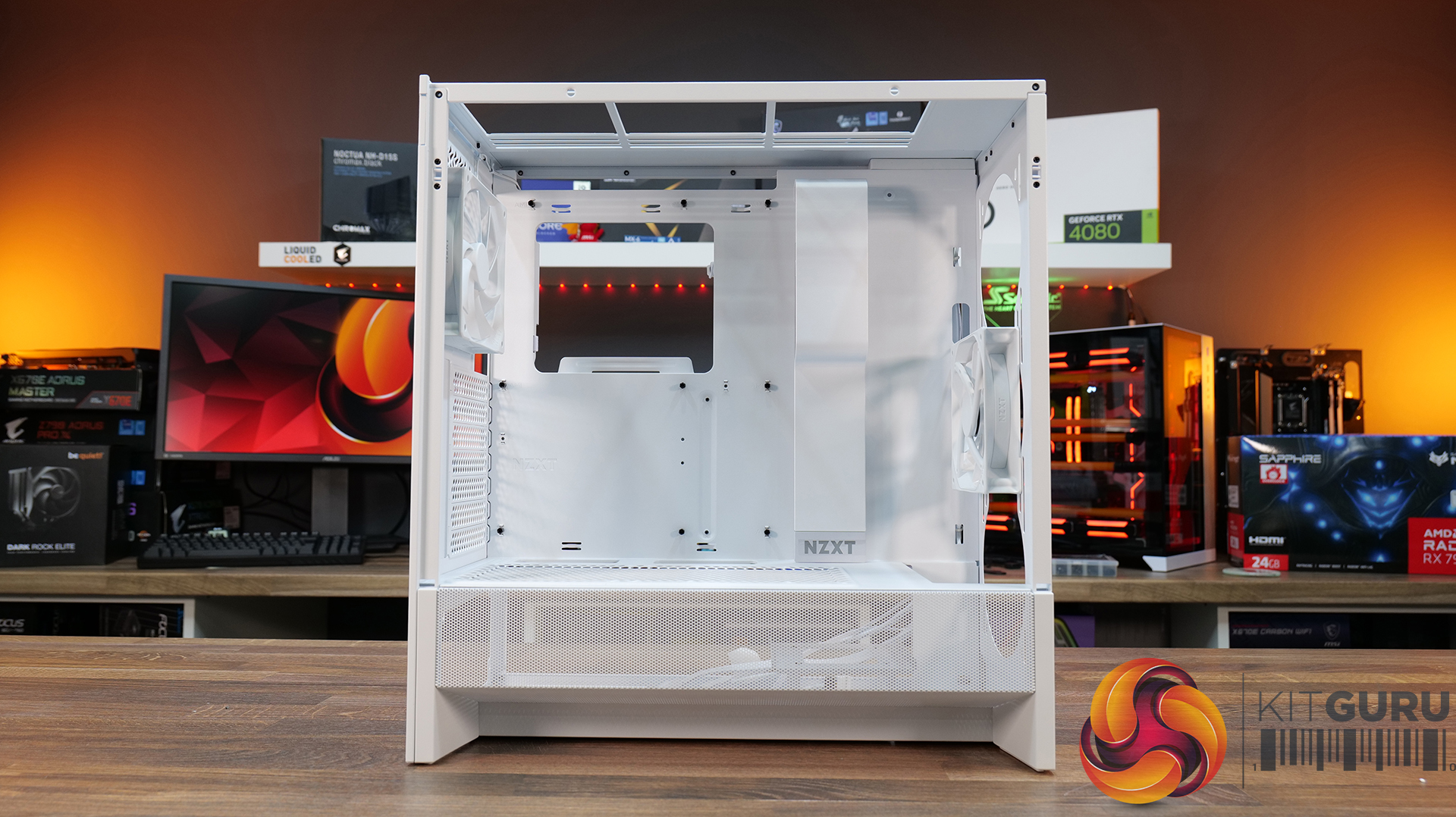 Thermal performance is measured with the case in various configurations, such as the default, with the tempered glass left-hand side panel removed and with the front panel removed to see how these configurations affect the CPU and GPU temperature. During testing, only stock case fans are used unless otherwise specified. All water pumps are set to maximum RPM and fans are set to a custom RPM curve by the Motherboard software/BIOS.