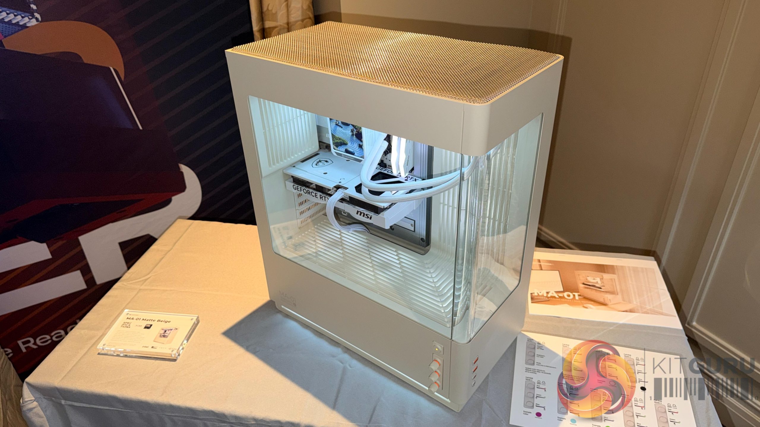 One of the standout features of the MA-01 is the use of woven steel mesh, a first of its kind in the PC case market. The mesh varies in porosity and depth to reduce high‑frequency resonance, lowering exhaust noise by up to 30% while maintaining airflow. The MA‑01 also conceals fans, radiators and lighting behind sculpted internal covers, with all illumination engineered to shine indirectly through vent slits and adjacent surfaces to create a soft ambient glow rather than visible LED hotspots.