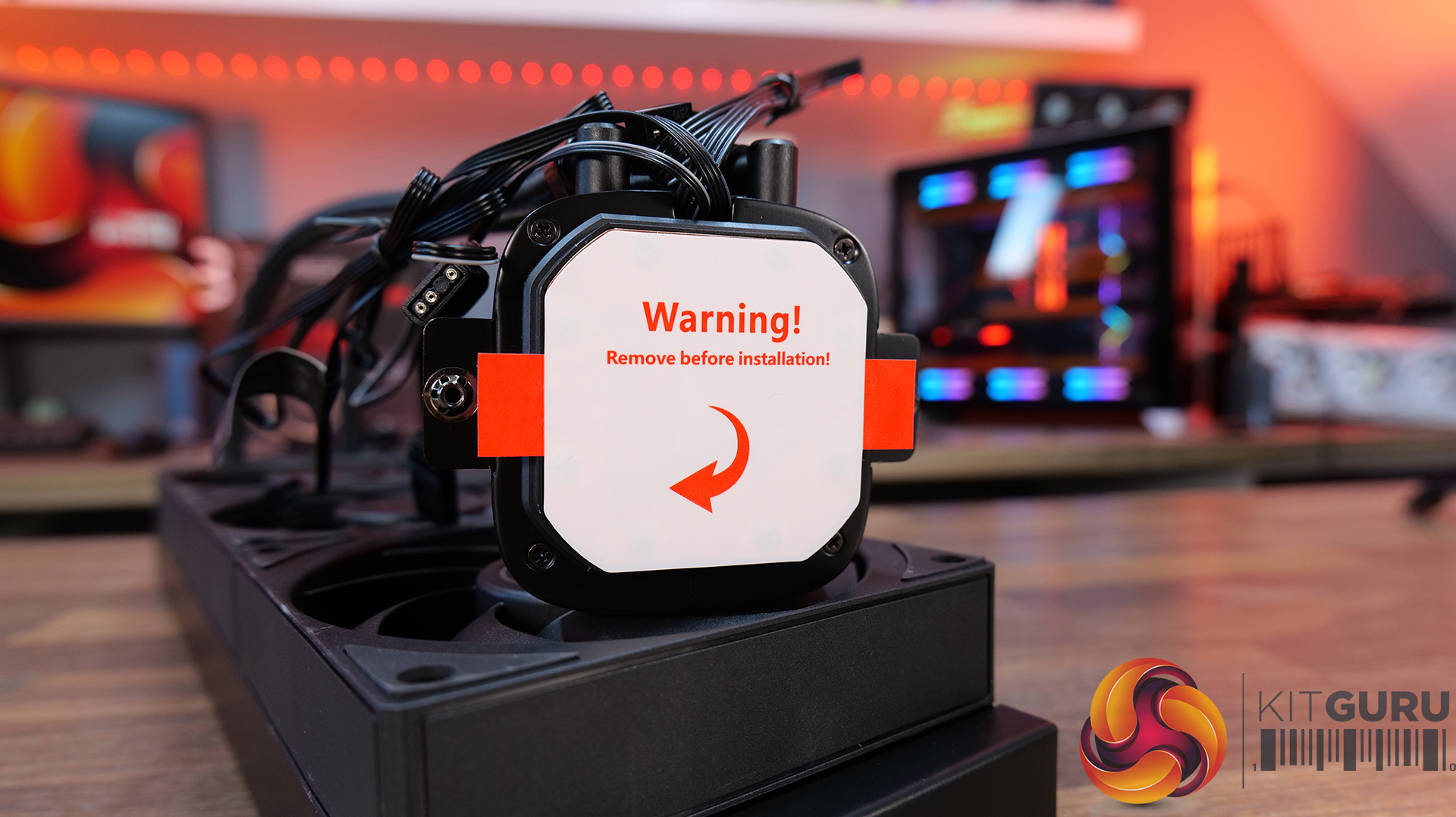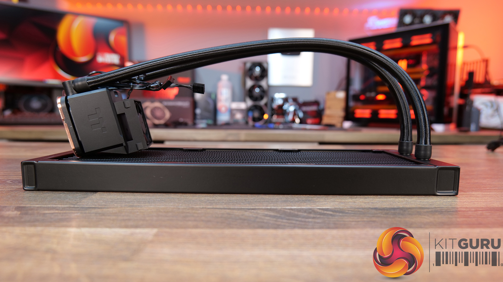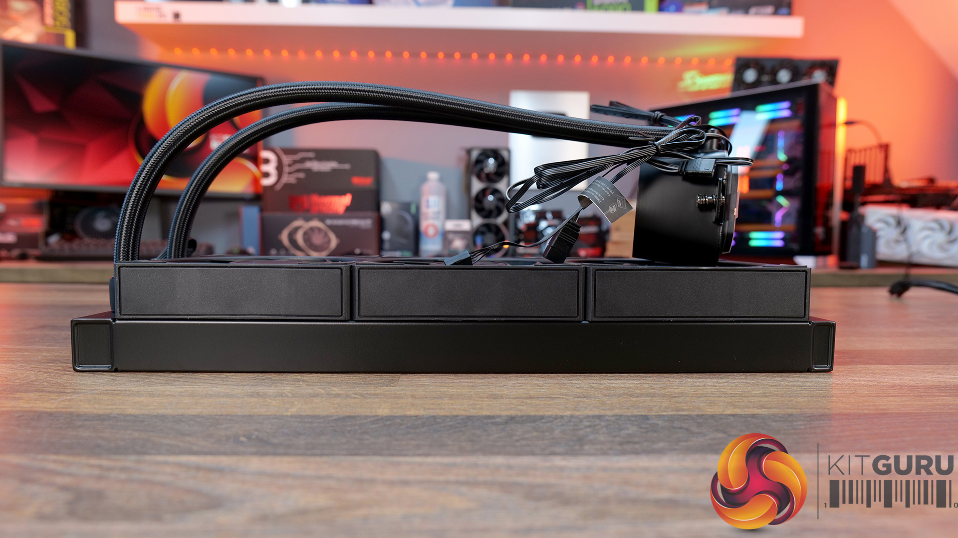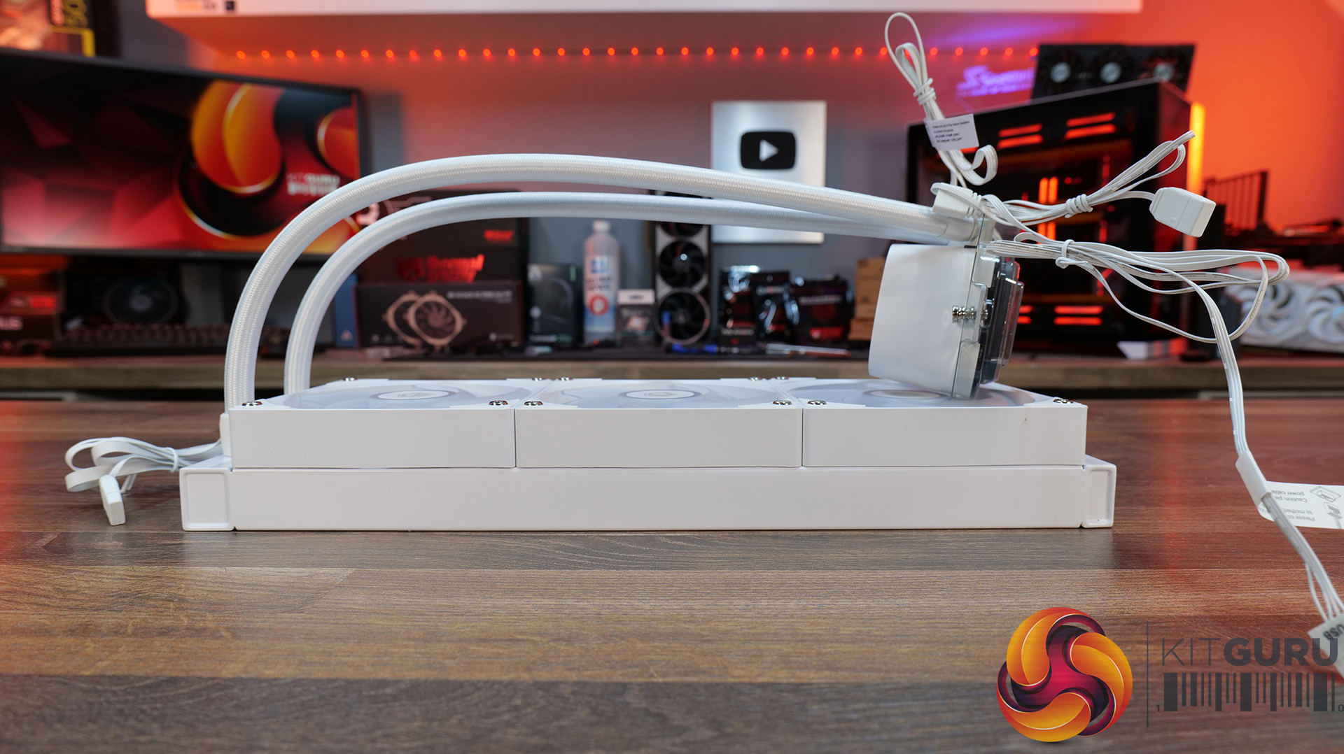 - Robust 360 mm aluminium radiator — Measuring 396 × 120 × 27 mm, with 12 waterways, and a dense fin stack to support up to 350W TDP.