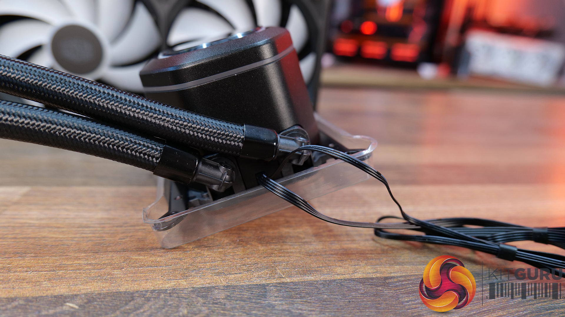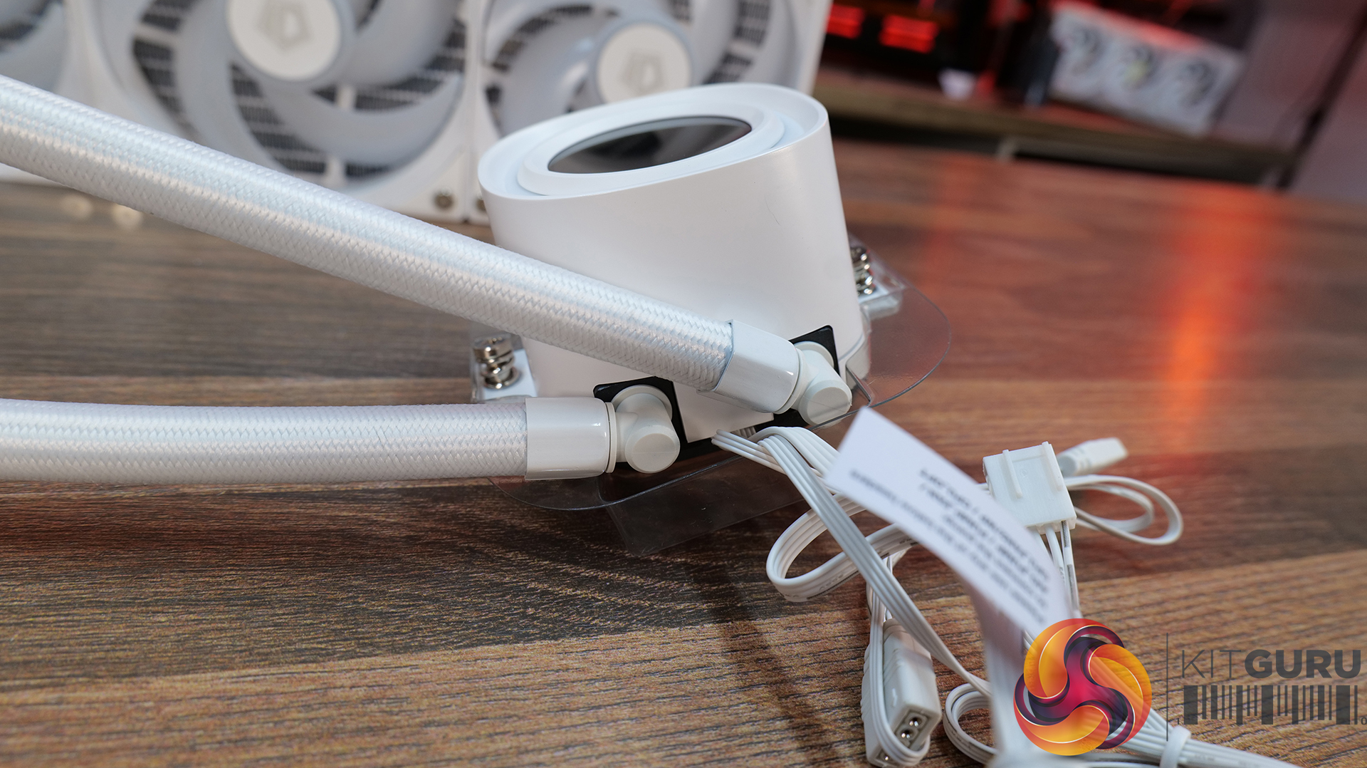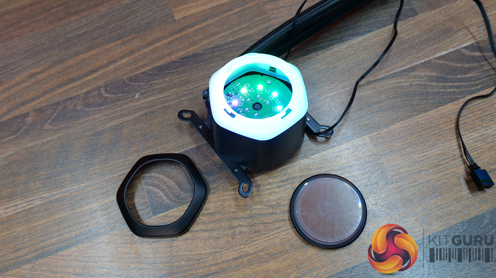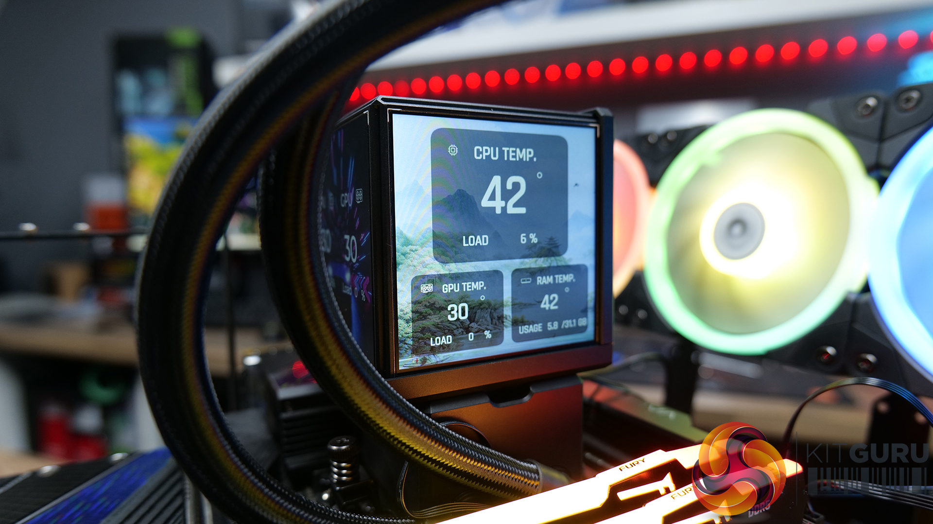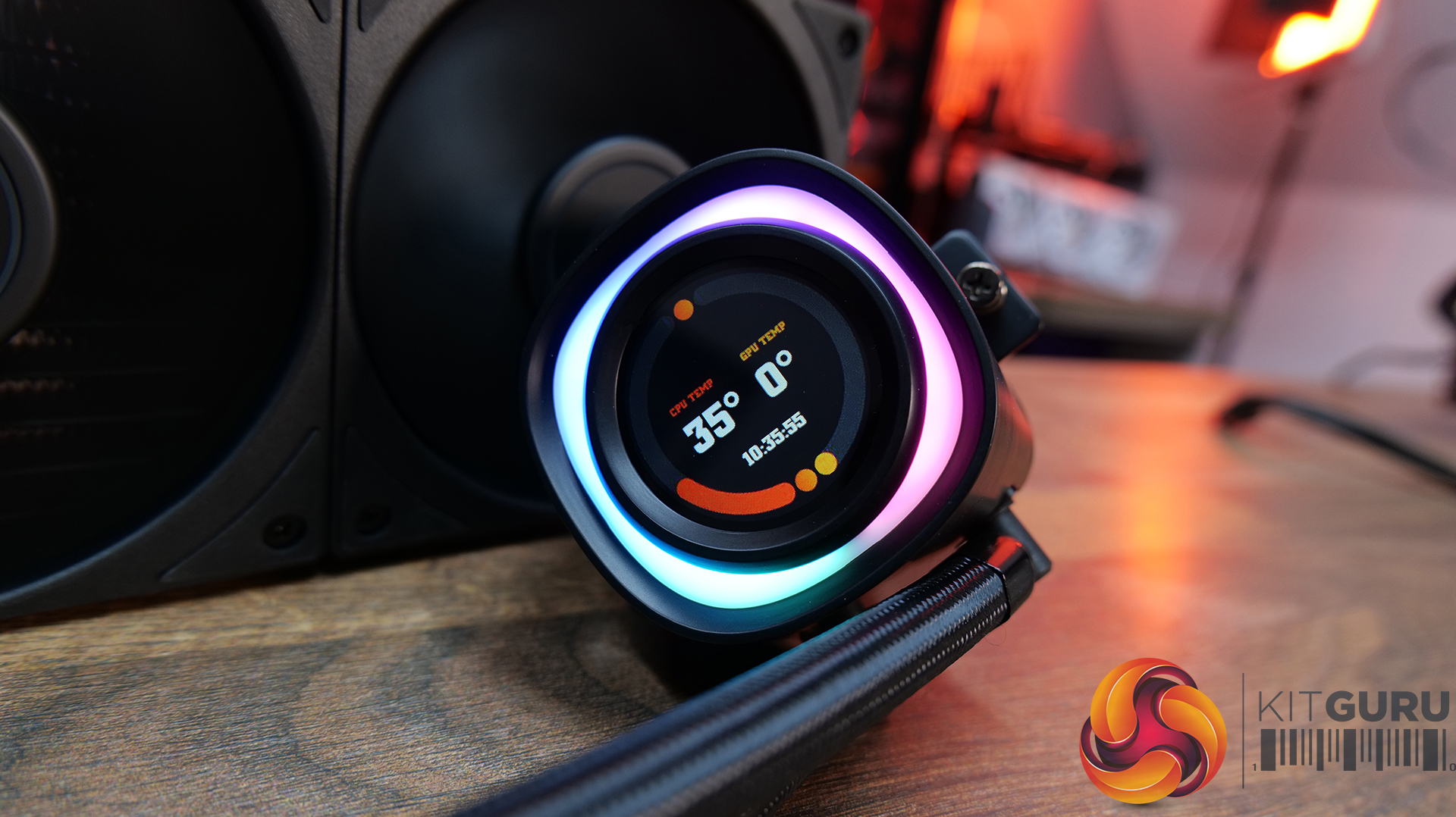 - 1.48-inch Customisable LCD Display – Pump head mounted LCD with 240 x 240 resolution, offering an 18‑bit colour depth (262K colours) and a 300 cd/m² backlight. This allows users to display real-time system information — like CPU temperature or frequency or even set custom graphics and short animations.