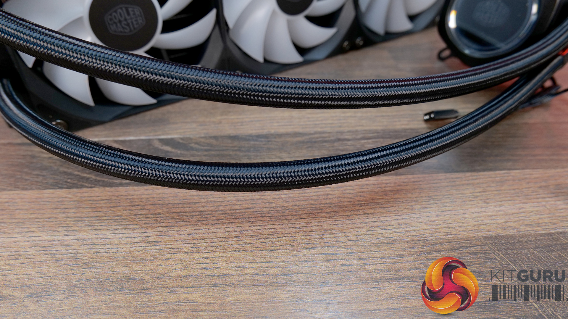 - 360 mm Radiator & Premium Tubing — Featuring a 396 × 120 × 27 mm aluminium radiator with 420 mm long premium sleeved tubing for efficient heat dissipation.