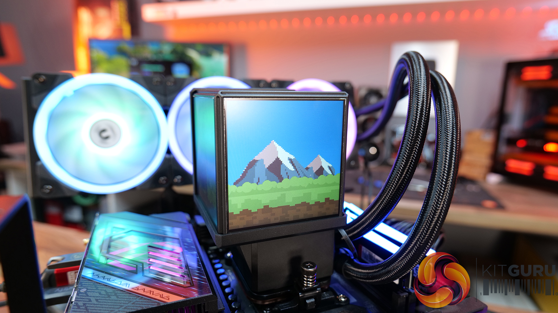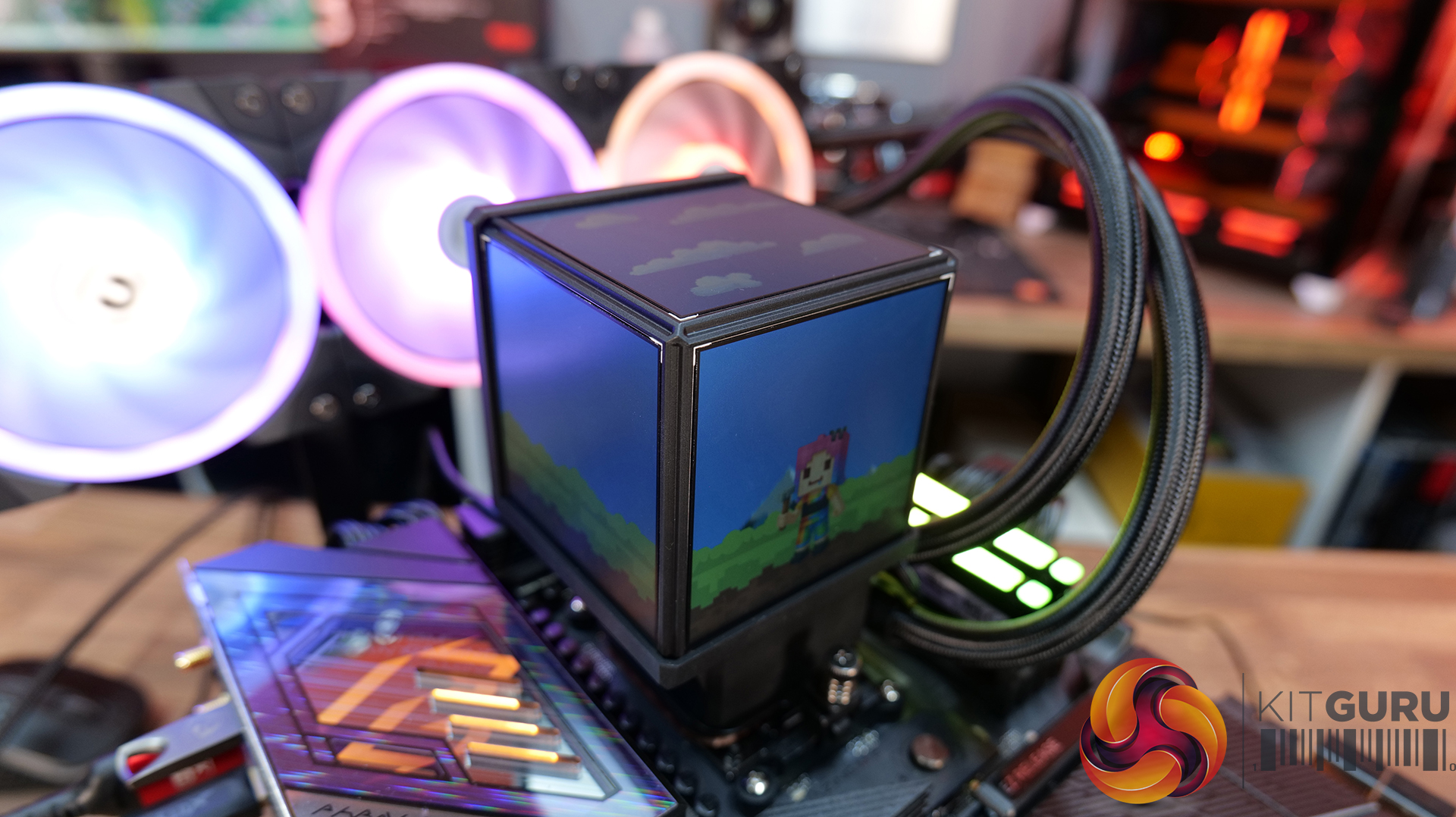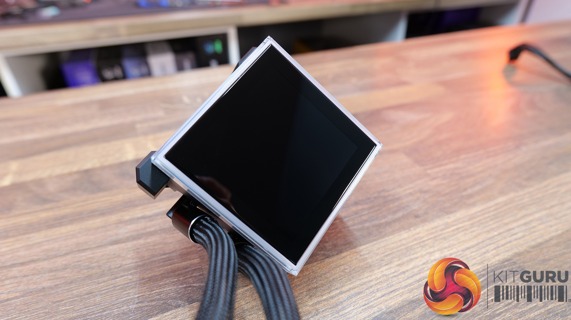 - Customisable 1.48-inch LCD — The pump block sports an LCD screen with 240 × 240 resolution, 18-bit (262K colour) display with 300 cd/m² backlight. The screen can display real-time performance stats, custom images and GIFs, plus videos and system information.