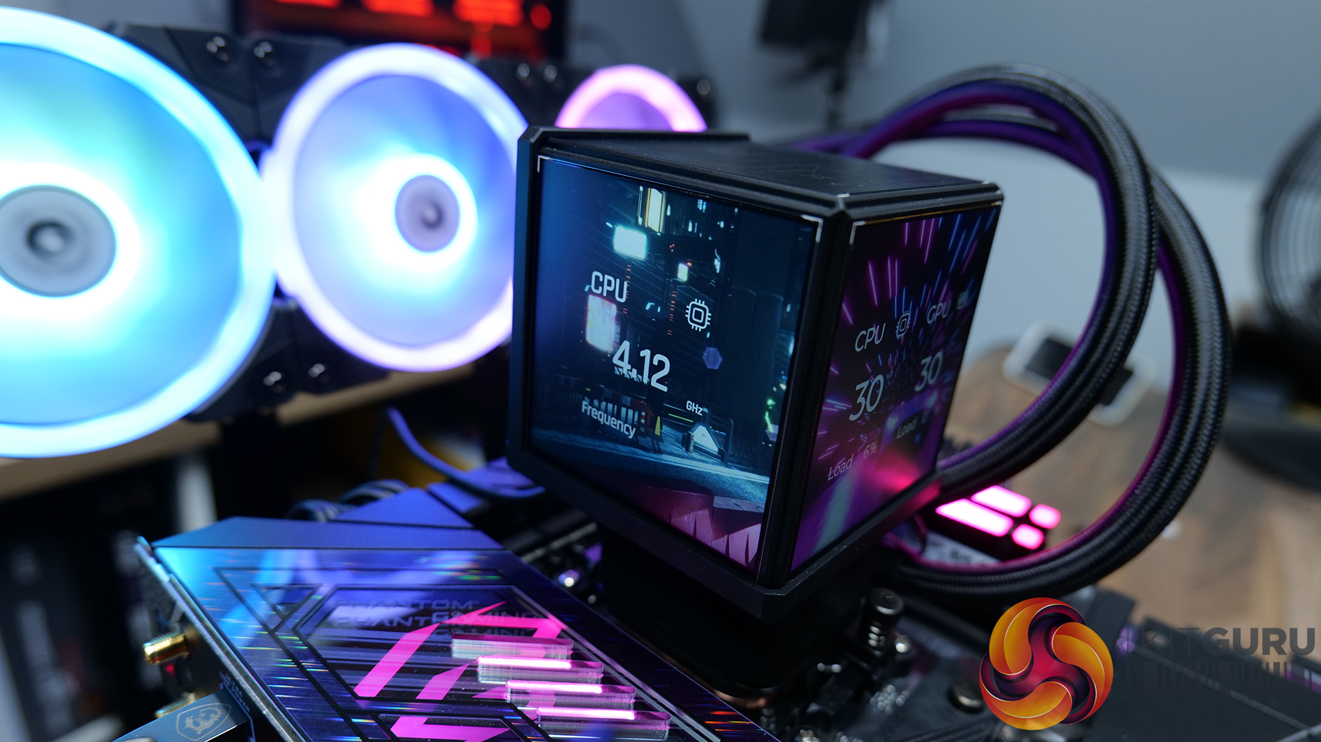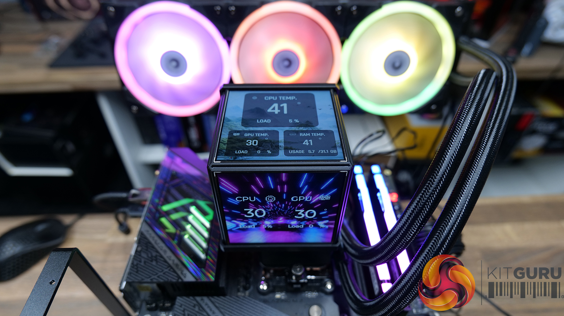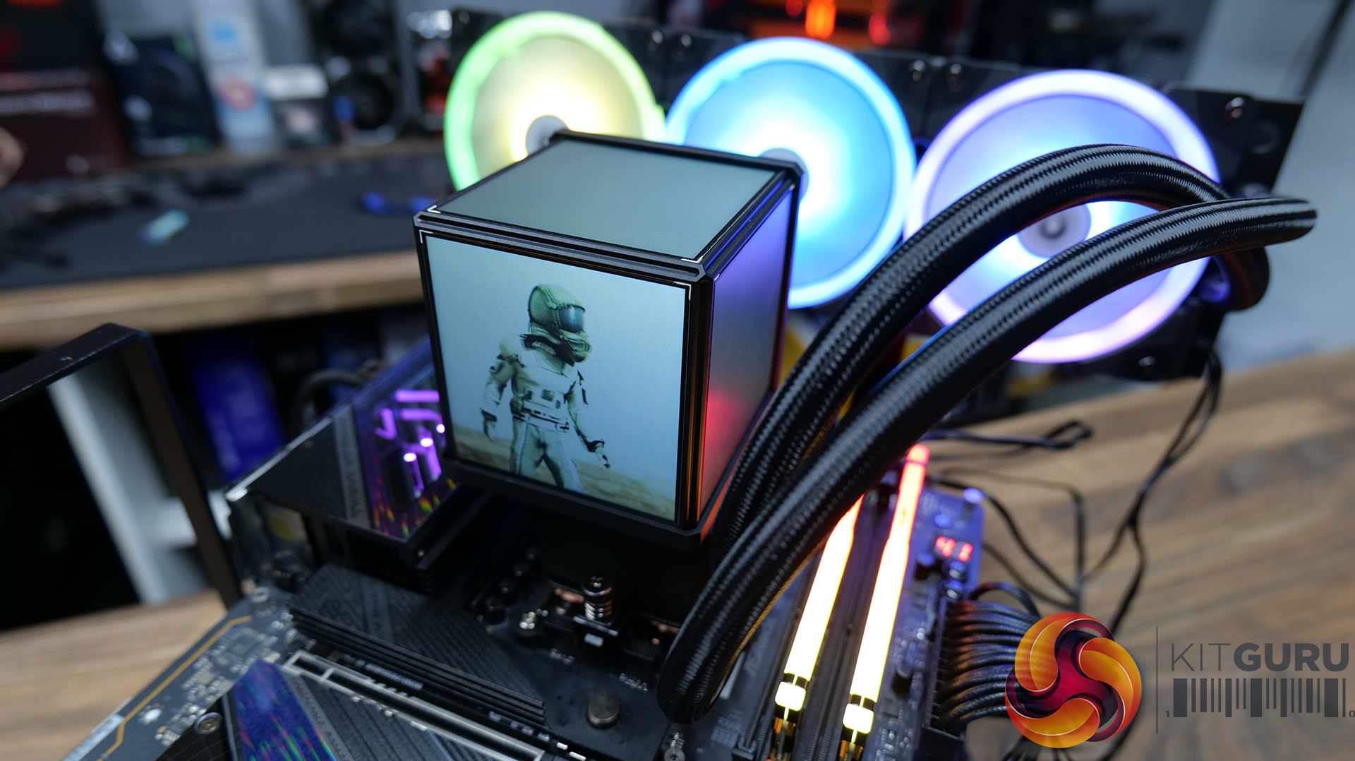 - Customisable 1.48-inch LCD — The pump block sports an LCD screen with 240 × 240 resolution, 18-bit (262K colour) display with 300 cd/m² backlight. The screen can display real-time performance stats, custom images and GIFs, plus videos and system information.