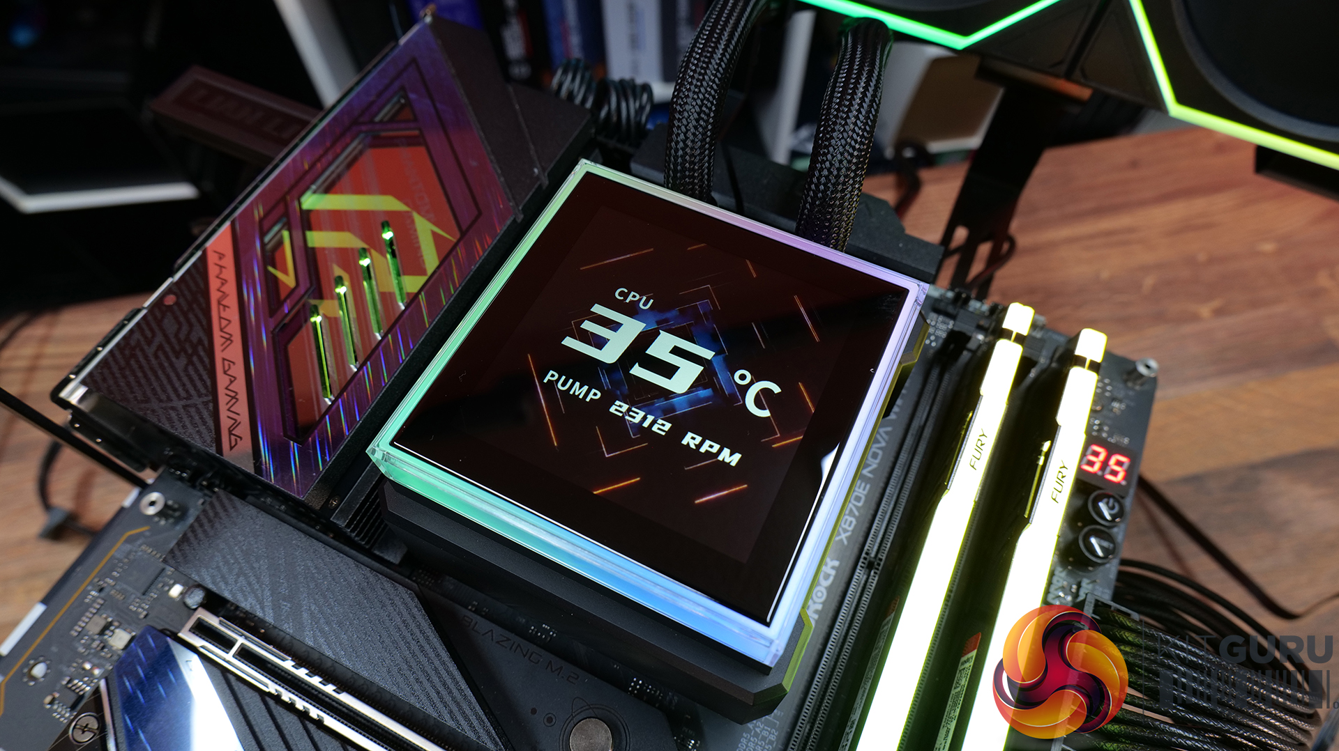 - Integrated VRM Cooling Fan — The pump block also includes a built‑in cooling fan (up to 3,500 RPM) to cool surrounding VRM components and help keep the LCD displays running reliably.