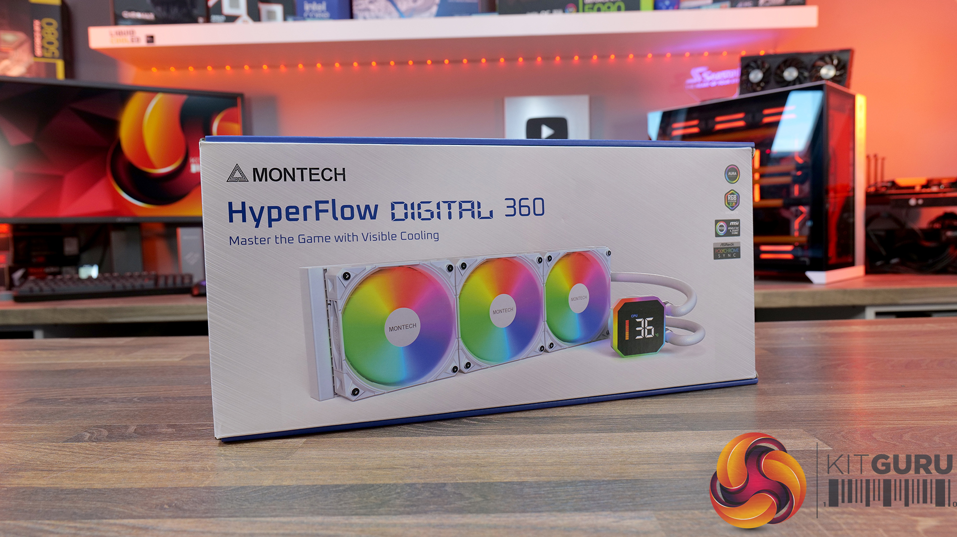 This is the Montech HyperFlow Digital – a 360mm AIO cooler with a digital display, RGB lighting, and black or white colour options. In this review, we’ll take a look at the design, ease of installation and test how it performs in terms of thermals and noise. So if you're considering this £90 cooler for your next build, here’s all you need to know before making a decision…