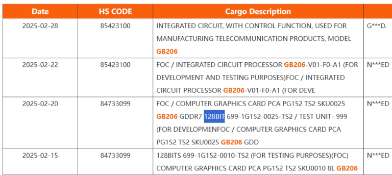 The configuration of Nvidia's upcoming lower-end GeForce RTX 50 series GPUs is still mostly unconfirmed, but rumours and reports have given us an idea of what to expect. The latest report comes from newly found shipping manifests, which show the memory bus of a GB206-based graphics card.