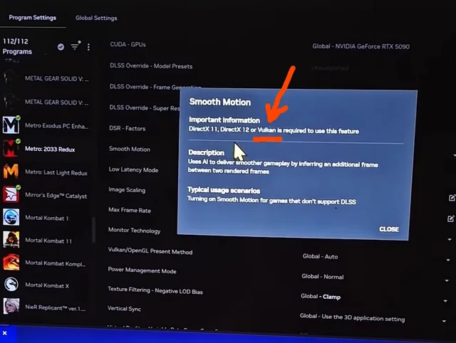 Nvidia's driver-level frame generation technology, Smooth Motion, is expanding its compatibility. Before, this technology was limited to DirectX 11 and 12 APIs, but a new update has extended support to games using the Vulkan API.