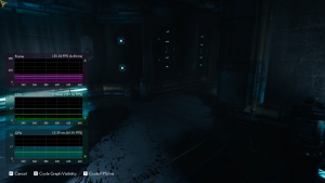 While running one of the benchmarks, you can display or hide graphs displaying frame rates, frame times for CPU and GPU, and total resource usage.
