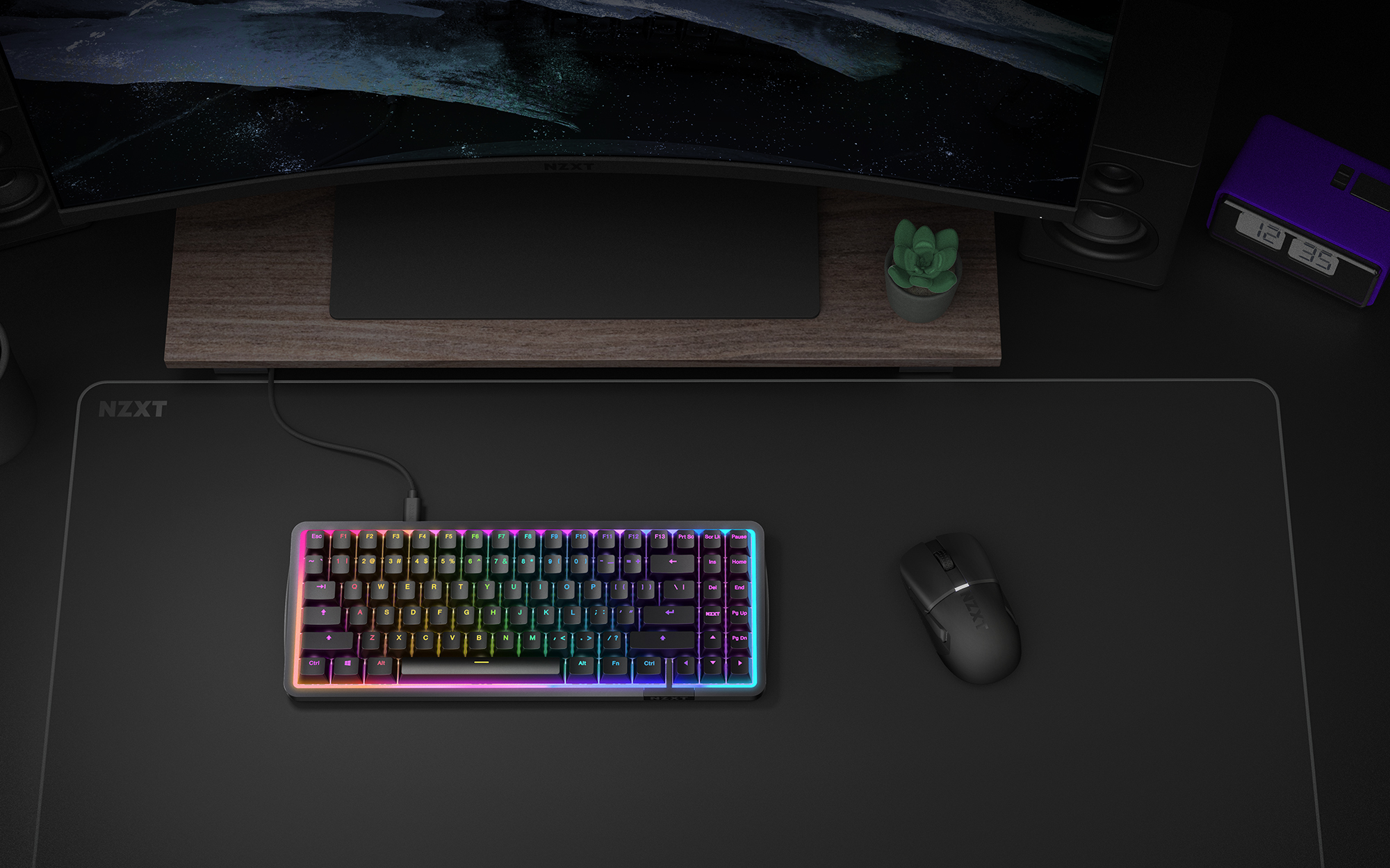 Starting with the Function Elite MiniTKL, this compact and stylish keyboard is built for gamers and enthusiasts. Its magnetic switches offer a responsive experience and customisation options, with adjustable actuation points and advanced features like Rapid Trigger and Snap Overrides for enhanced gameplay. The keyboard is also gasket-mounted, has sound-dampening foam, and has an aluminium body. Customisable per-key RGB lighting, controlled through NZXT CAM software, adds a touch of flair.