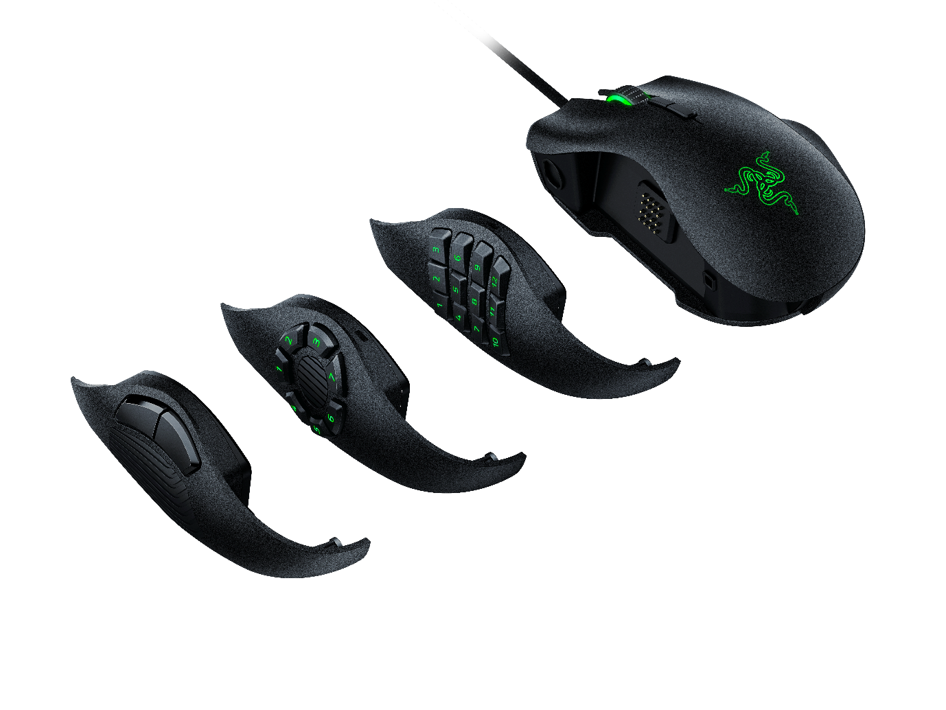The Razer Naga Trinity gives users three different interchangeable side plates, from the classic 2-button panel, to the Hex V2’s 7-button and the Naga Chroma’s 12-button design. These plates simply click into place, giving the user access to mechanical mouse switches of any style they wish.