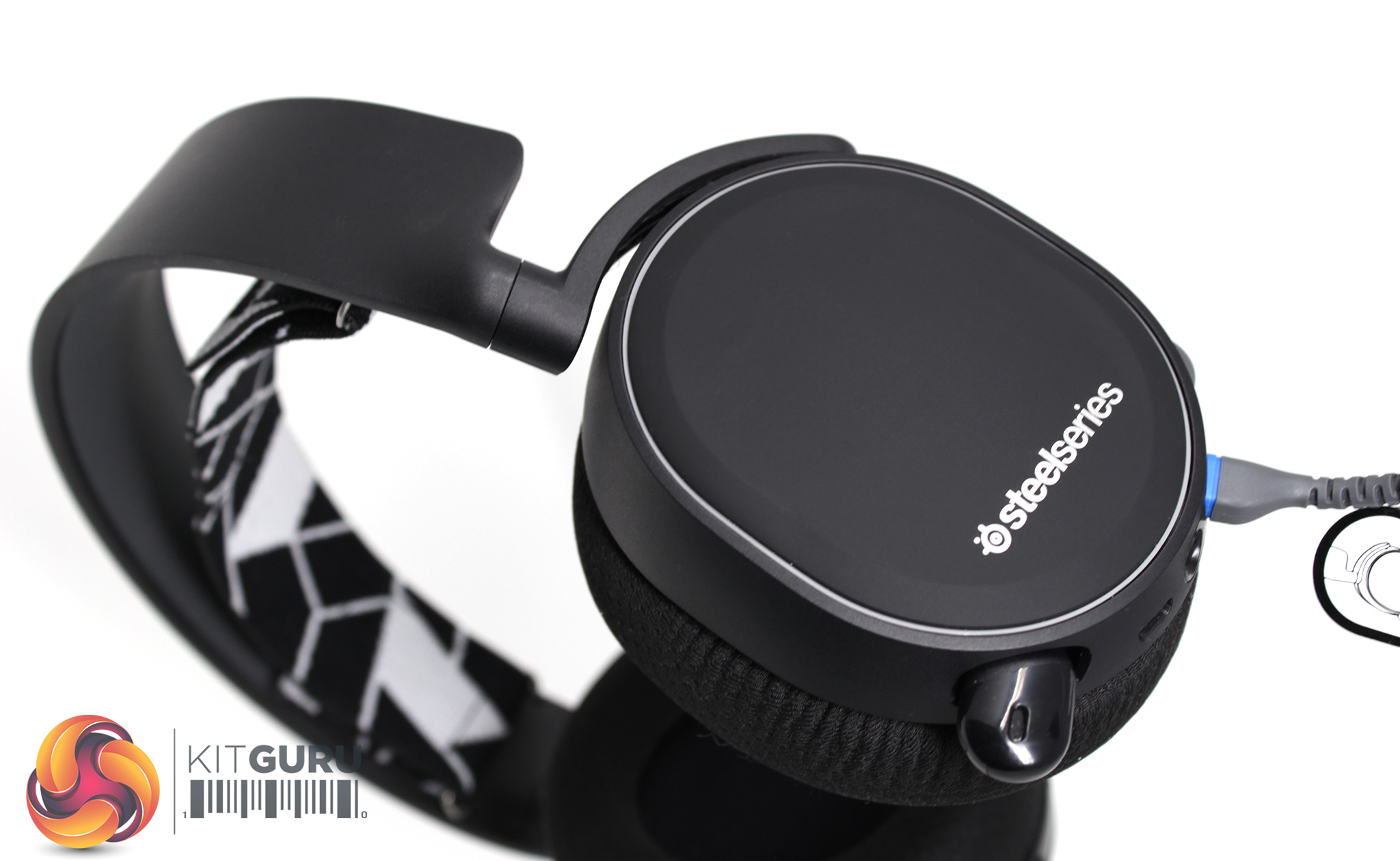 Moving onto the headset itself, the Arctis 3 features 90-degree rotatable ear cups to make it easier to travel with, while the rotatable cups also help users to take the device off more comfortably. The SteelSeries logo is neatly placed at the base of each cup in white font against a black background.