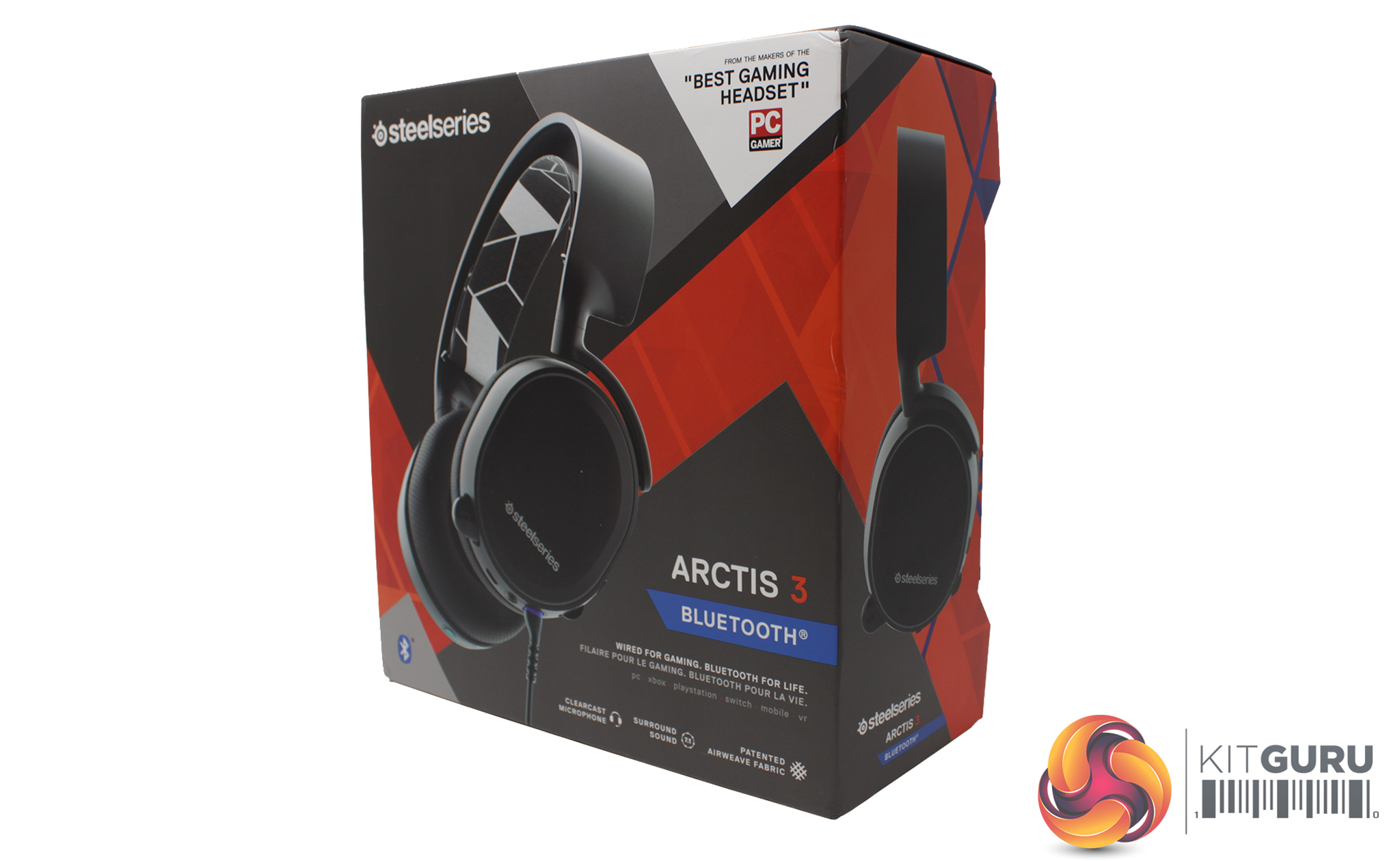 Similar to other Arctis products, the SteelSeries Arctis 3 Bluetooth ships in a sleek orange and grey box with the headset fully displayed on the front. The rear of the box displays an infographic of the uses, contents and features that the Arctis 3 Bluetooth has to offer.