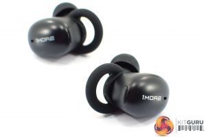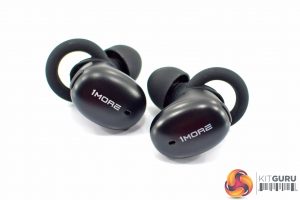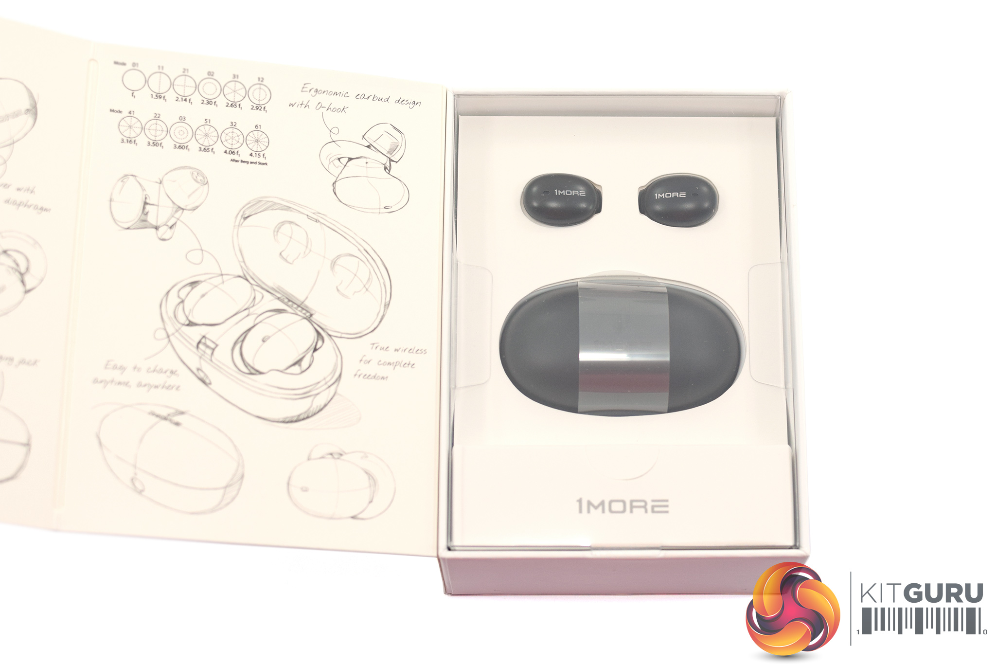 The 1MORE Stylish True Wireless In-Ear Headphones ship in a compact box, with an image of each earbud visible on the front, along with the red ‘iF Design Award 2019' logo.
