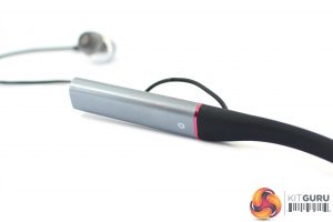 At the bottom of the neckband, we find two silver sections which are used for on-ear controls and battery storage. The outside of each section sports the 1MORE logo, and it is also worth noting all the on-ear controls are on the left-hand side – as we can see above, the right-hand side is left bare.