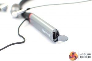 The last thing to point out is the USB-C port used to charge the earphones. This is housed under a small flap at the end of the left-hand side of the neckband.