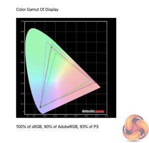 Kicking off with the gamut testing, it is a good start for the AG275QXL. We find 100% sRGB, 90% AdobeRGB and 93% DCI-P3 coverage, more than enough for a gaming monitor of this class.