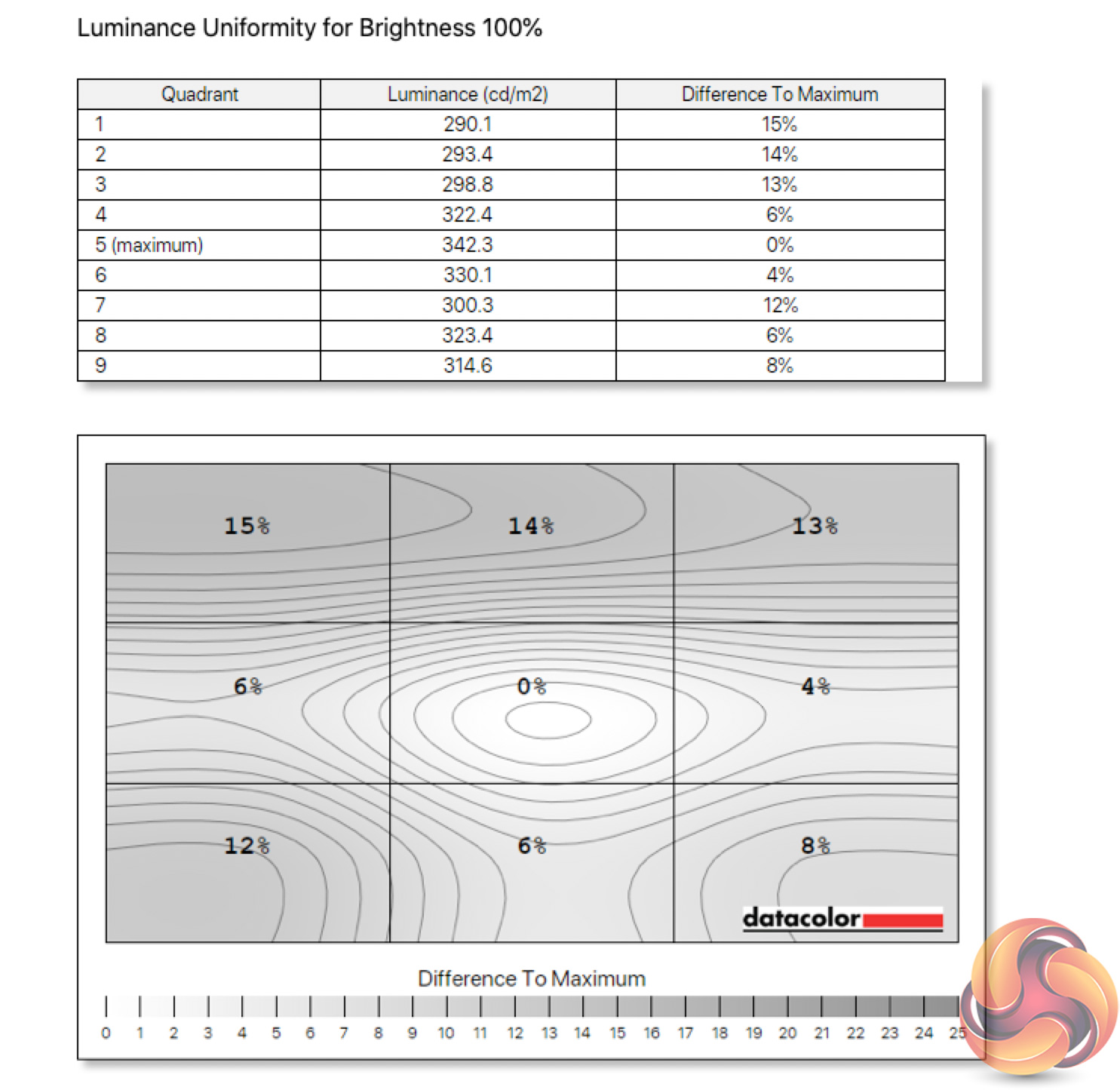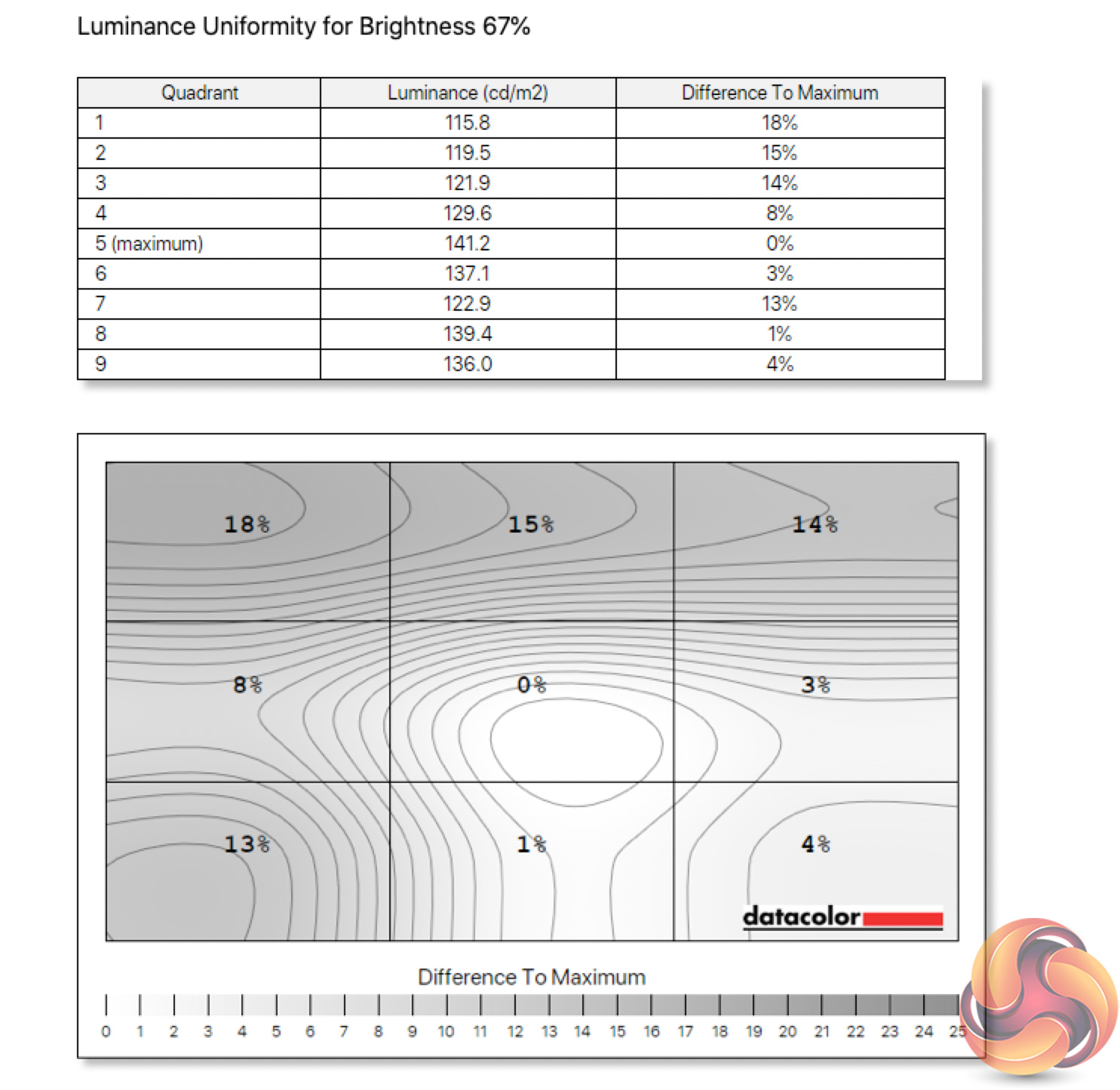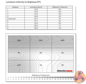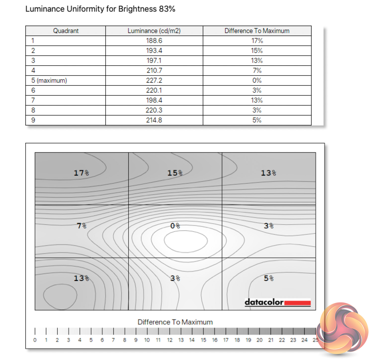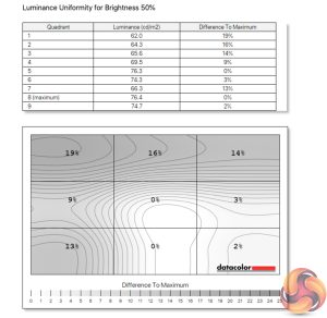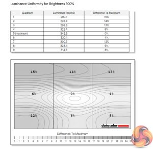 There is a bit deviation when looking at the luminance uniformity too, particularly at the top and down the left-hand side, but it didn't bother me in use.