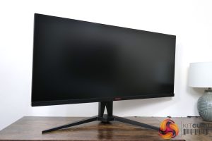 In terms of the design, the AOC Agon AG405UXC is about as stealthy as its possible to be considering the sheer size of this screen. It's almost entirely black, with just a small AGON logo printed in red on the bottom bezel. The top and side bezels are nice and slim too, measuring about 6mm, though the chin is thicker at approximately 1.9mm.
