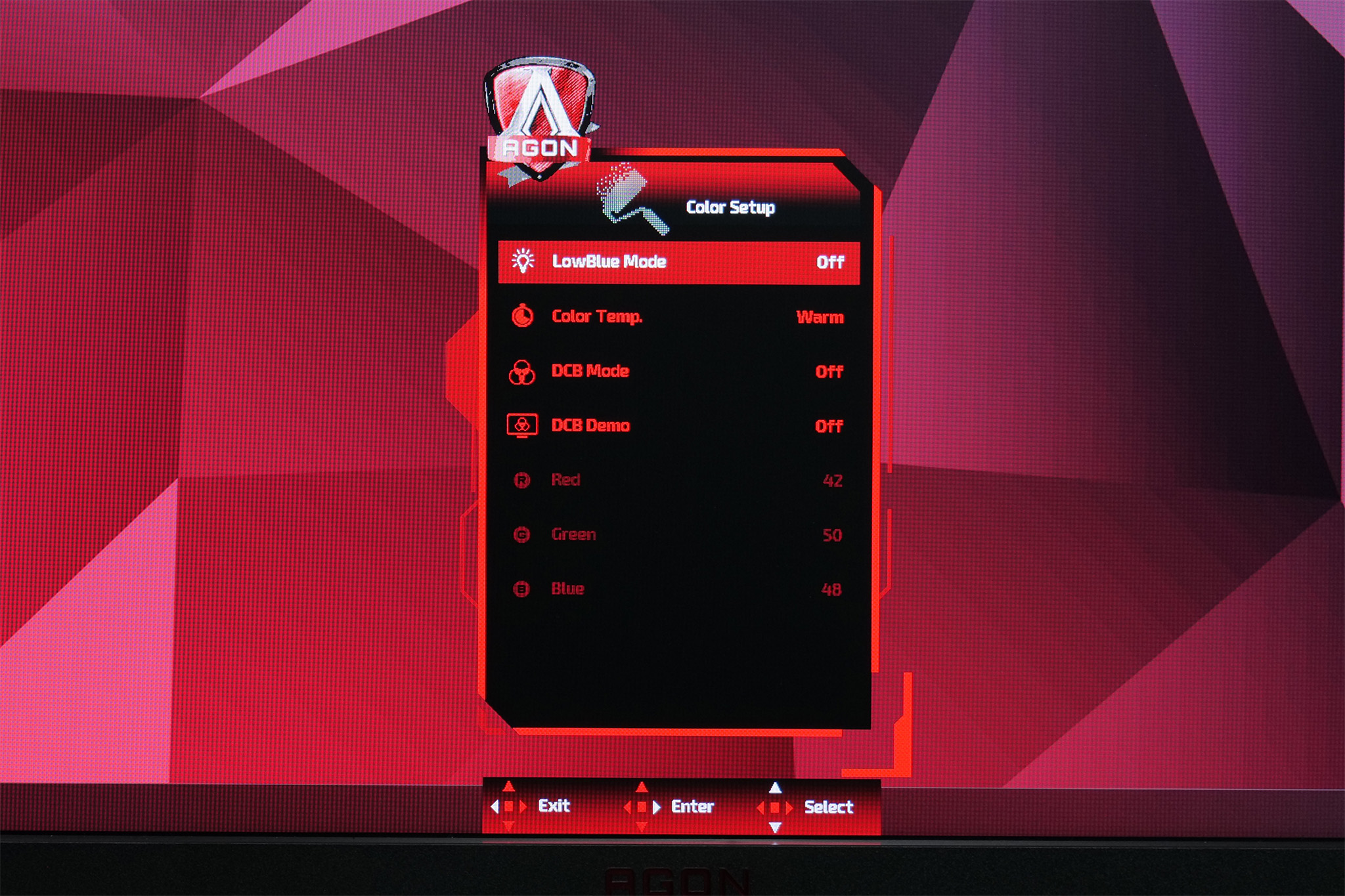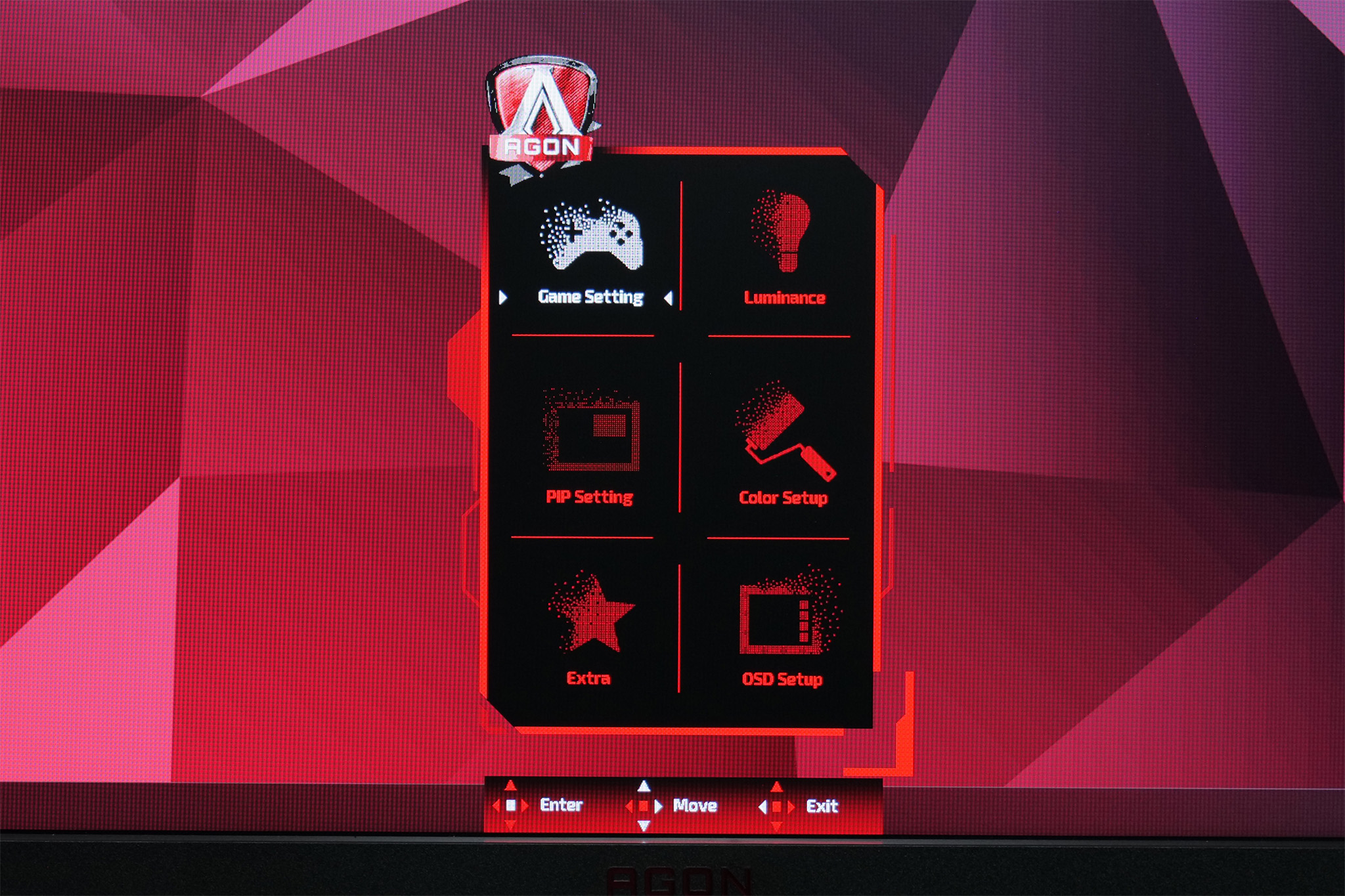The OSD will be familiar if you've seen any of our other AOC Agon reviews. Everything is split into six main tabs – Game Setting, Luminance, PIP Setting, Color Setup, Extra, and OSD Setup:
