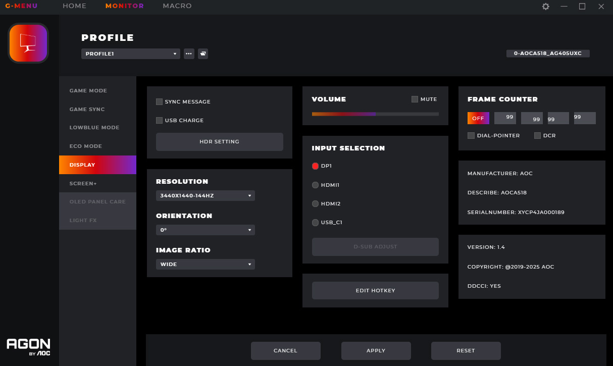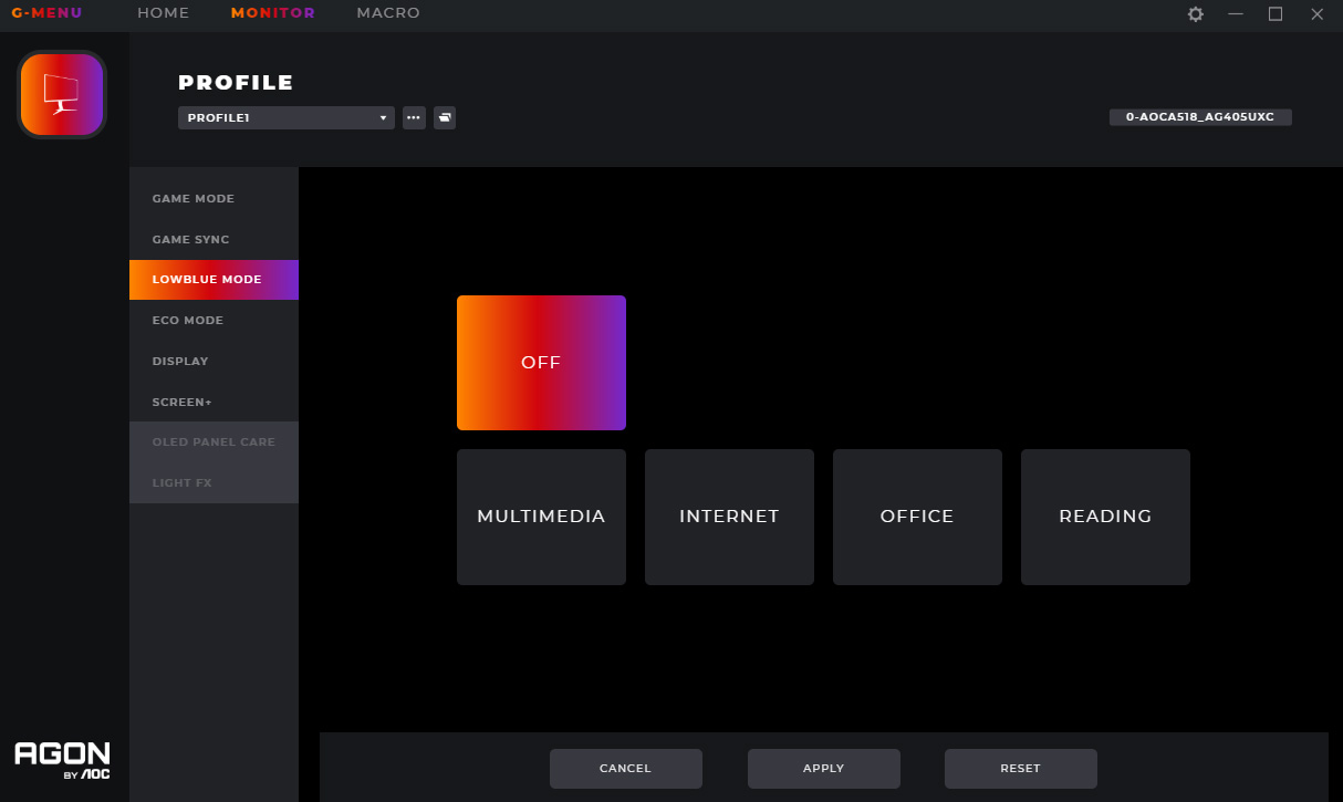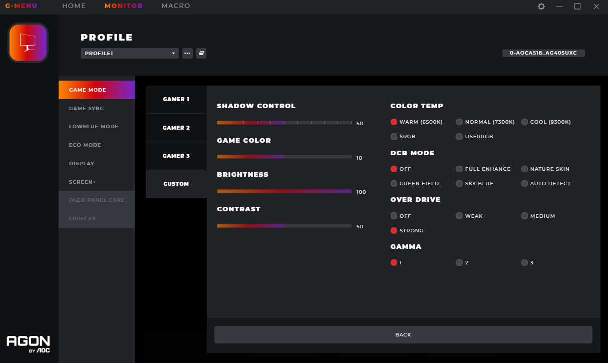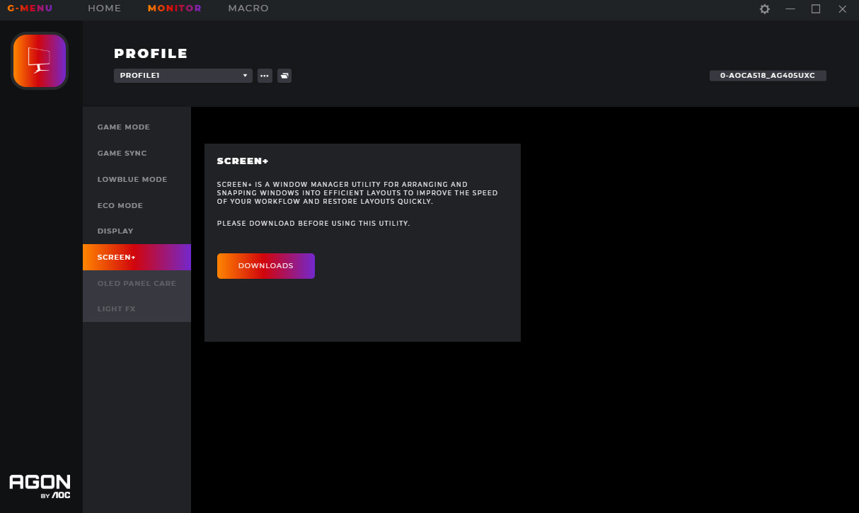 AOC also offers its Gmenu software, which is a Windows-based app which lets you quickly adjust the monitor's settings directly from your PC. It works well and provides another way to adjust any of the various settings on offer, so there's no complaints from me.