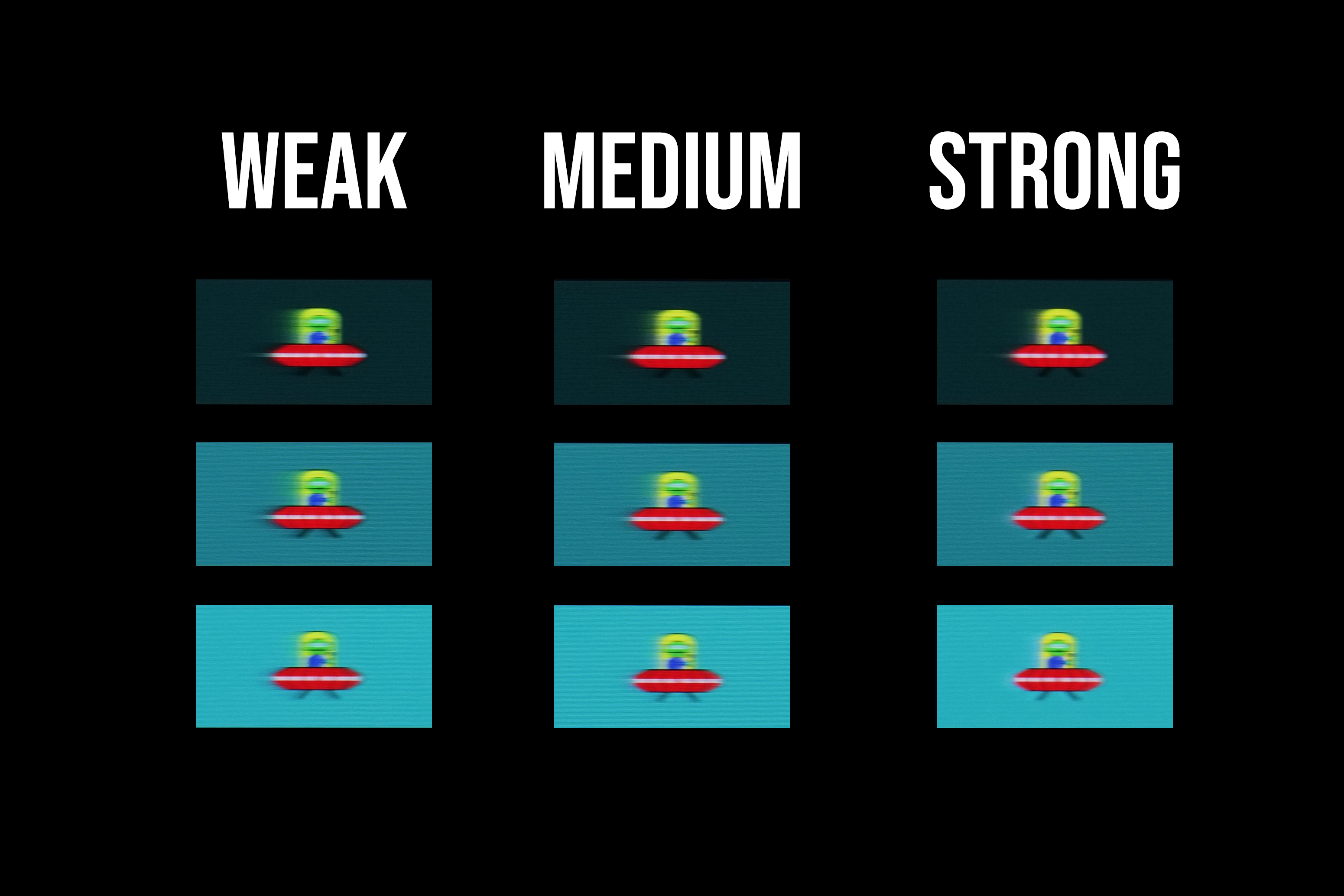 That's illustrated by the above pursuit camera images, using the Blur Busters UFO test. You can see the amount of visible trailing even using the Strong overdrive setting, while there's just a hint of a pale corona due to the small amount of overshoot.