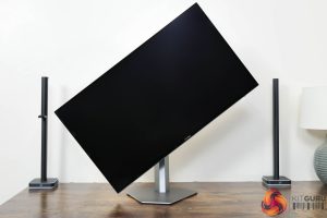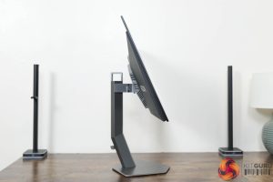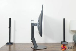 The stand also offers a full array of ergonomic adjustments, including height adjust up to 130mm, 30 degrees of swivel in both directions, tilt from -4 to +21.5 degrees, and we also get 90 degree pivot both left and right. The thing I would say is that the stand itself doesn't feel like amazing quality, it's quite plasticky and does creak a bit when adjusting the monitor's position, but you can use a VESA 100×100 stand or mount if you'd prefer.