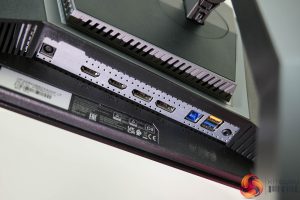 As for display inputs, AOC has opted for 2x DisplayPort 1.4 and then 2x HDMI ports – but they're unfortunately HDMI 2.0, rather than 2.1, so can't drive the screen above 144Hz which is a definite shame. We also find a two port USB 5Gbps hub and an audio jack, but that's it – so no USB-C, no KVM functionality or other mod-cons we have come to expect.